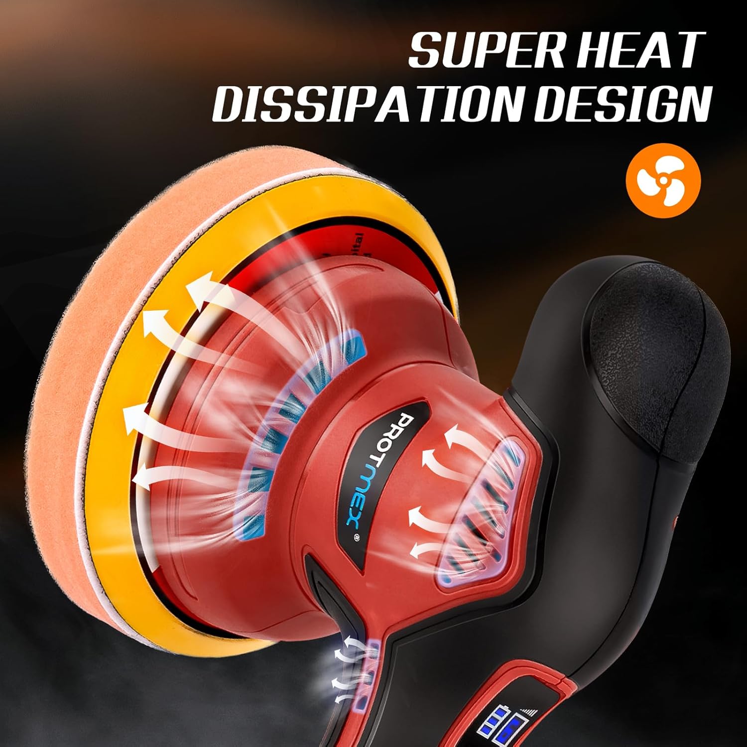 - 【2025 NEWLY UPGRADED ECCENTRIC POLISHER】The Protmex car polisher is equipped with a pure copper motor, and safe temperature control protection, stable and durable operation. The eccentric polisher can help wax spread evenly to prevent over-polishing and paint wear.