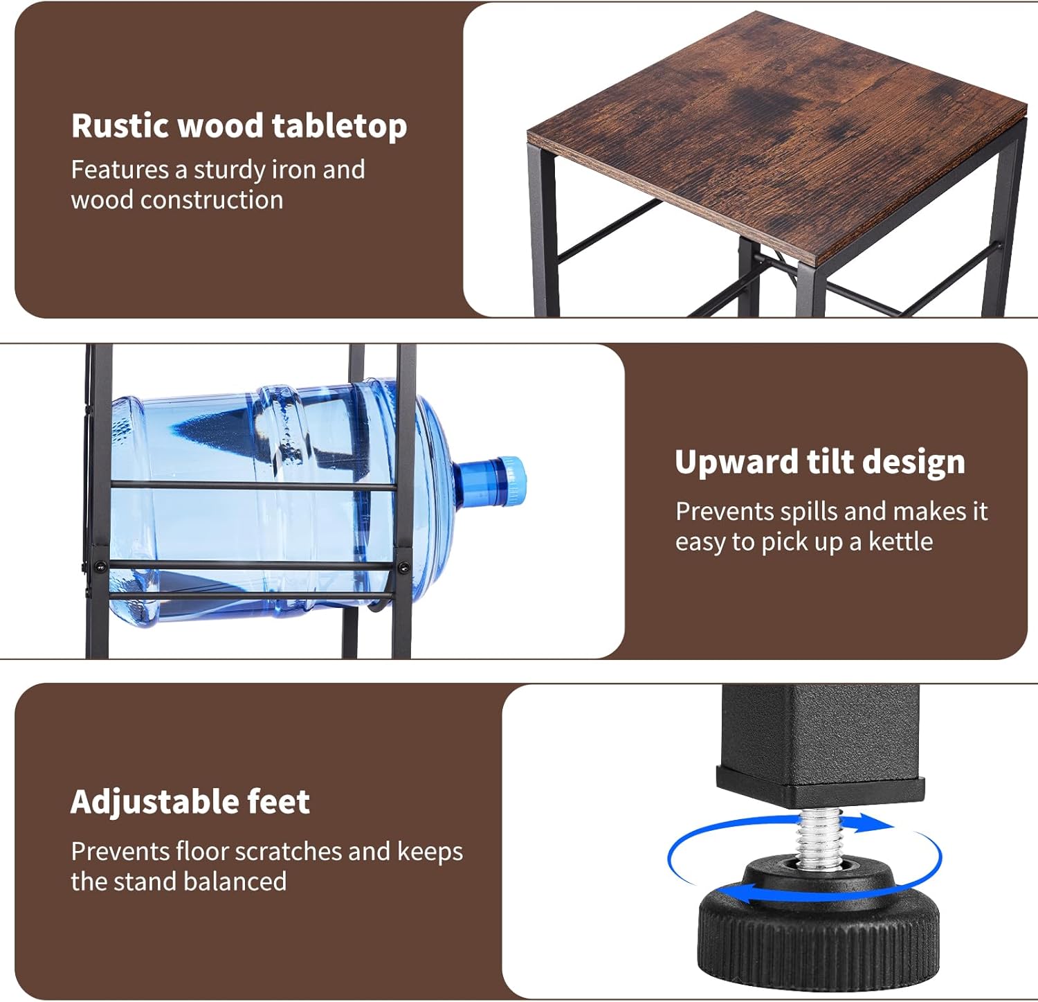 - Heavy-Duty Construction: 5 gallon water jug holder built with durable steel and sturdy particleboard; rust-resistant and corrosion-proof for long-lasting use