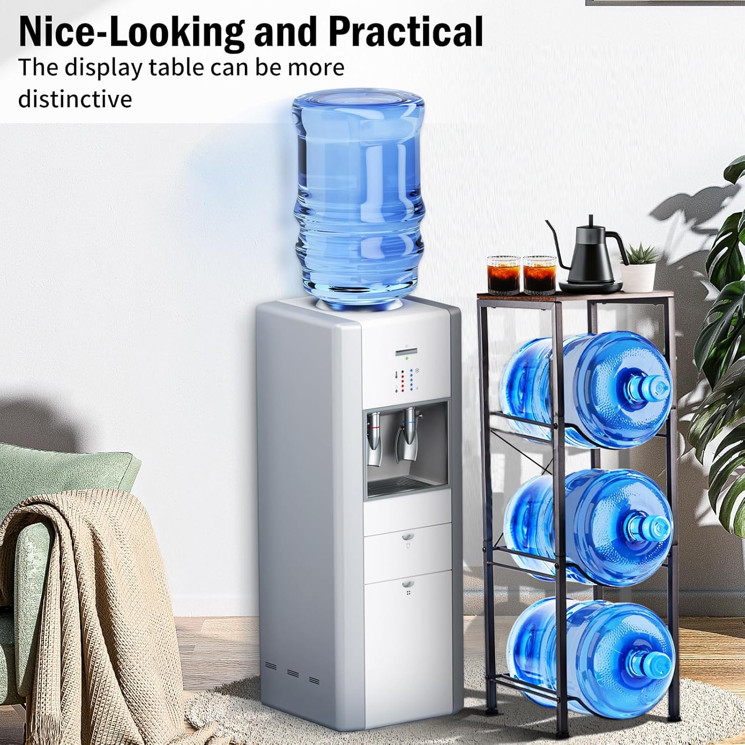3-Tier 5 Gallon Water Bottle Holder, Heavy Duty Water Jug Rack with Wood Top Shelf, Water Dispenser Stand for Kitchen, Office, Garage