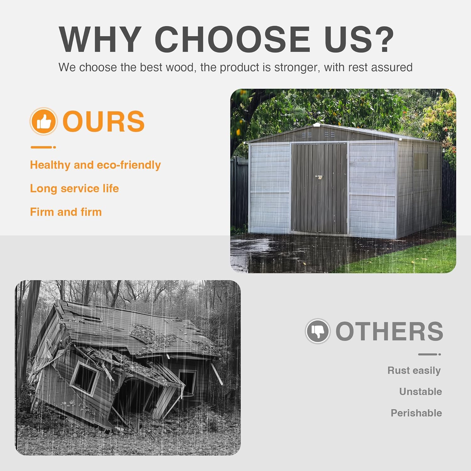 - [Multi-Use Outdoor Storage] — Tools, Bikes, Garden Supplies & More: Perfect as a bike shed, tool storage shed, potting room, lawn equipment shelter, outdoor workshop, or seasonal gear storage. Its versatile design and wide double doors provide easy access for all your backyard essentials.