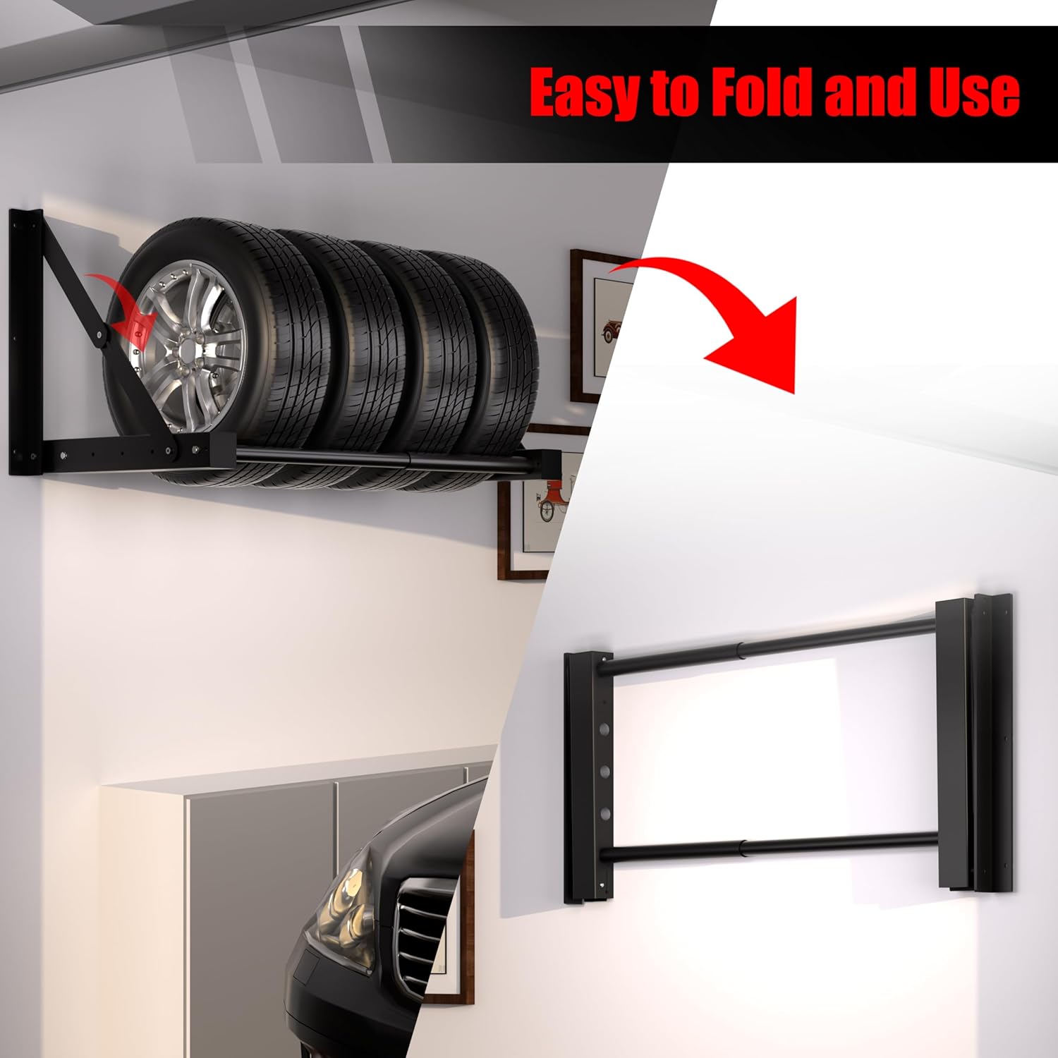 - Folding wall-mounted design, space-saving: when not in use, it can be stored against the wall, freeing up floor space and keeping the garage tidy