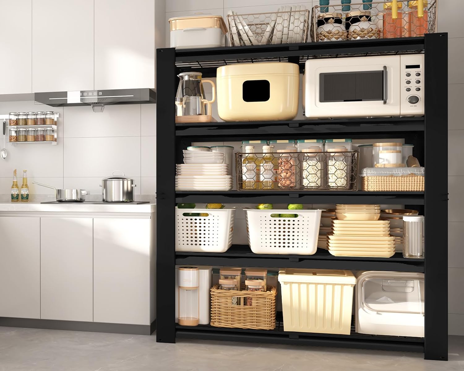 - ăEasy Assemble within 10 Minutes ăThe metal storage shelves adopt a bolt-free interlocking design and can be quickly assembled in just 10 minutes. It comes with a rubber mallet and gloves to make the installation process simple and efficient. Tips: Evenly distribute the items on each shelf to ensure the stability and load-bearing capacity of the garage shelves.