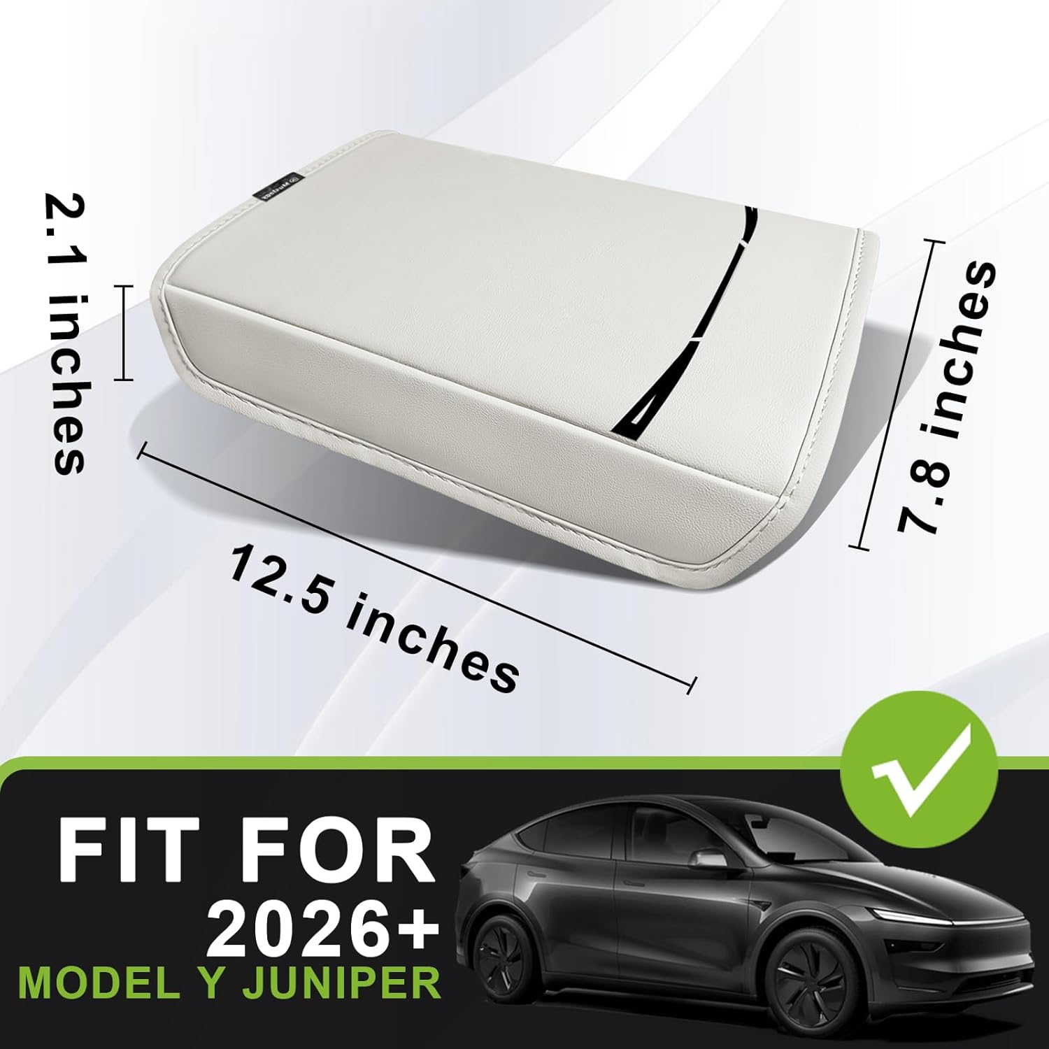 Muslogy Center Console Armrest Cover Compatible with Tesla Model Y Refresh 2026 Comfort Armrest Pad Arm Rest Cushion Vegan Leather Protector Regular Thick (25+ |Juniper| White, Regular)