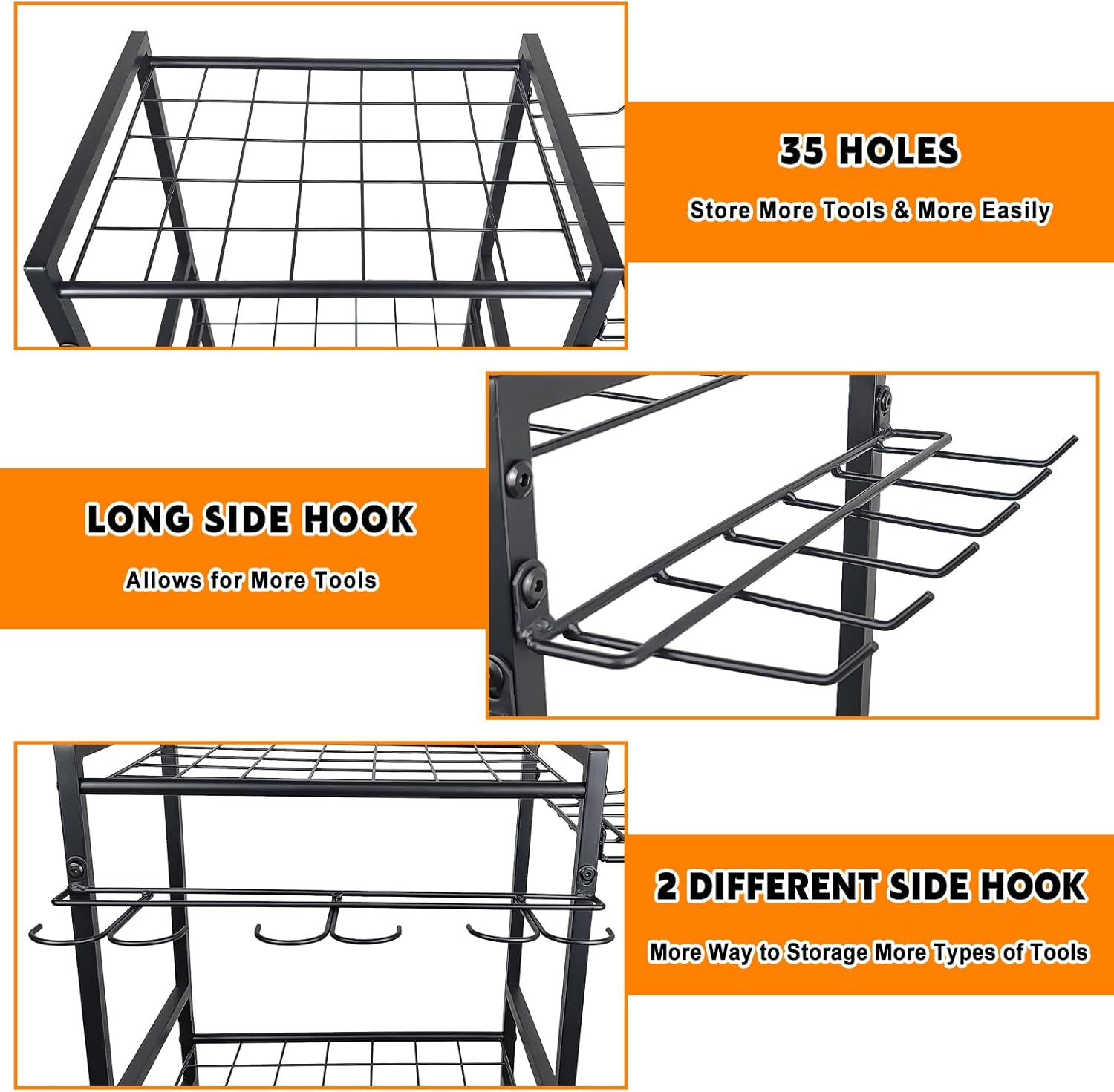 - Heavy Duty Steel: The garden storage made of a coated steel frame that's sturdy enough to withstand indoor or outdoor use. In contrast to plastic tool rack, ours is constructed from the high quality steel, making it rust-resistant and corrosion-resistant