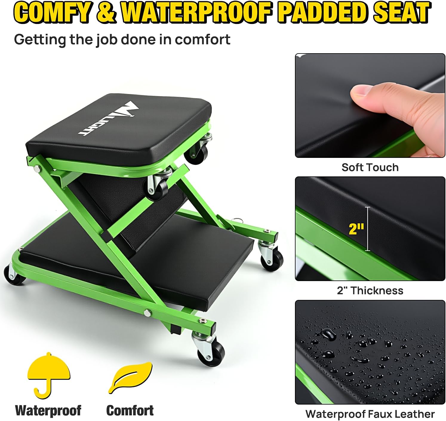 Nilight 36" Z Creeper - 2-in-1 Rolling Folding Car Seat, 36 inches Adjustable Roller Garage Chair Lay Down or Sit, 330LBS Capacity, Green Black