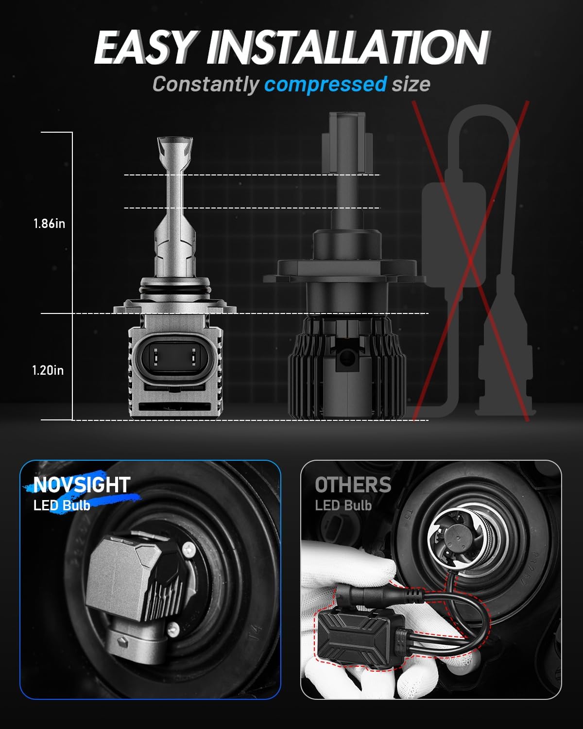 NOVSIGHT H11 9005 LED Fog Light Bulbs,100000 Lumens,6500K Cool White Light,800% Brightness,Plug and Play, Pack of 4