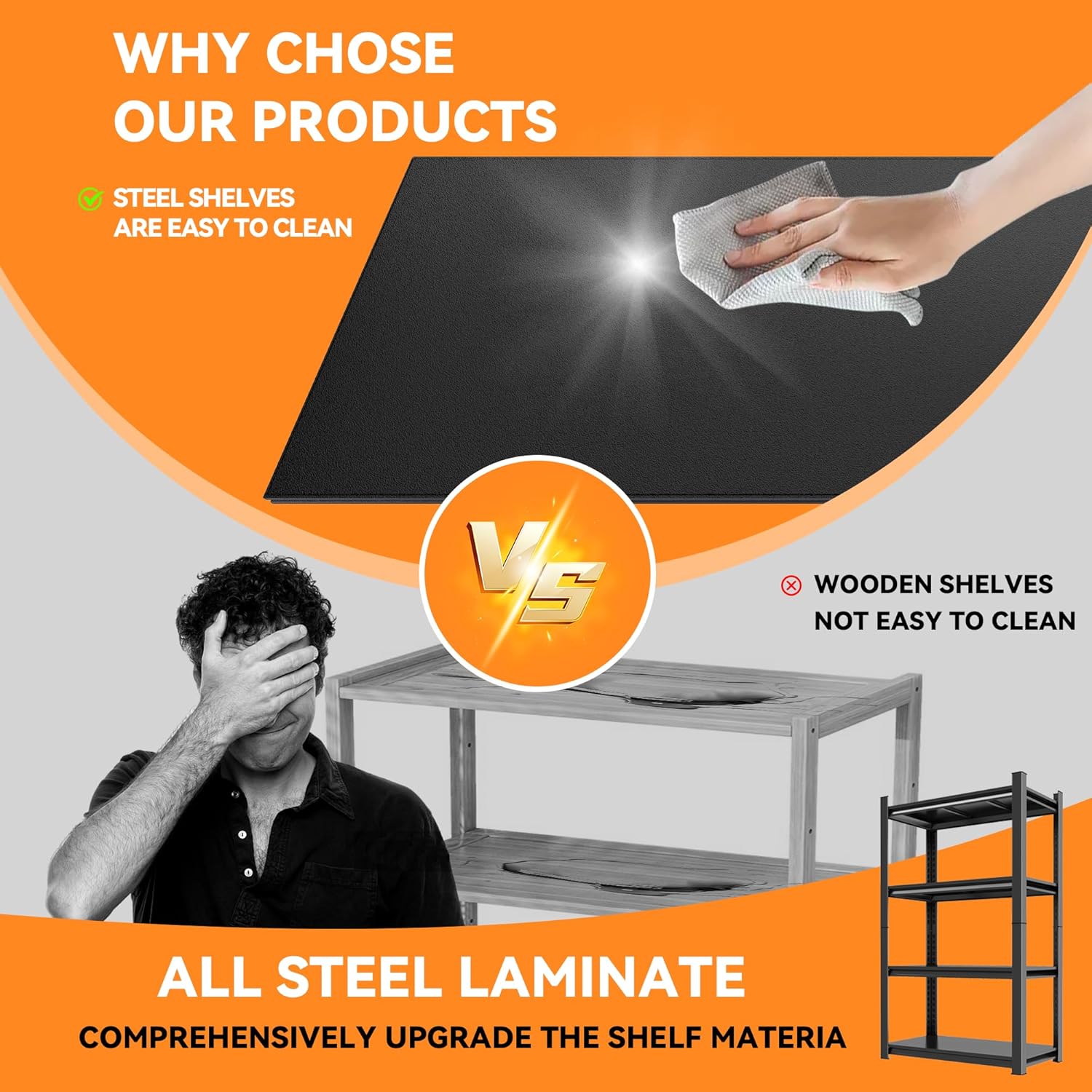 - 【UPGRADED SAFETY PROTECTION】Each shelf of our garage shelving is equipped with specially designed fall prevention safety rails, which effectively prevents items from accidentally falling and greatly reduces the chance of items tipping over and rolling to the ground in busy places such as garages and workshops where items are prone to collisions or bumps. Meanwhile, garage shelving adopts upgraded double-layer columns, which significantly improves stability and load-bearing capacity.
