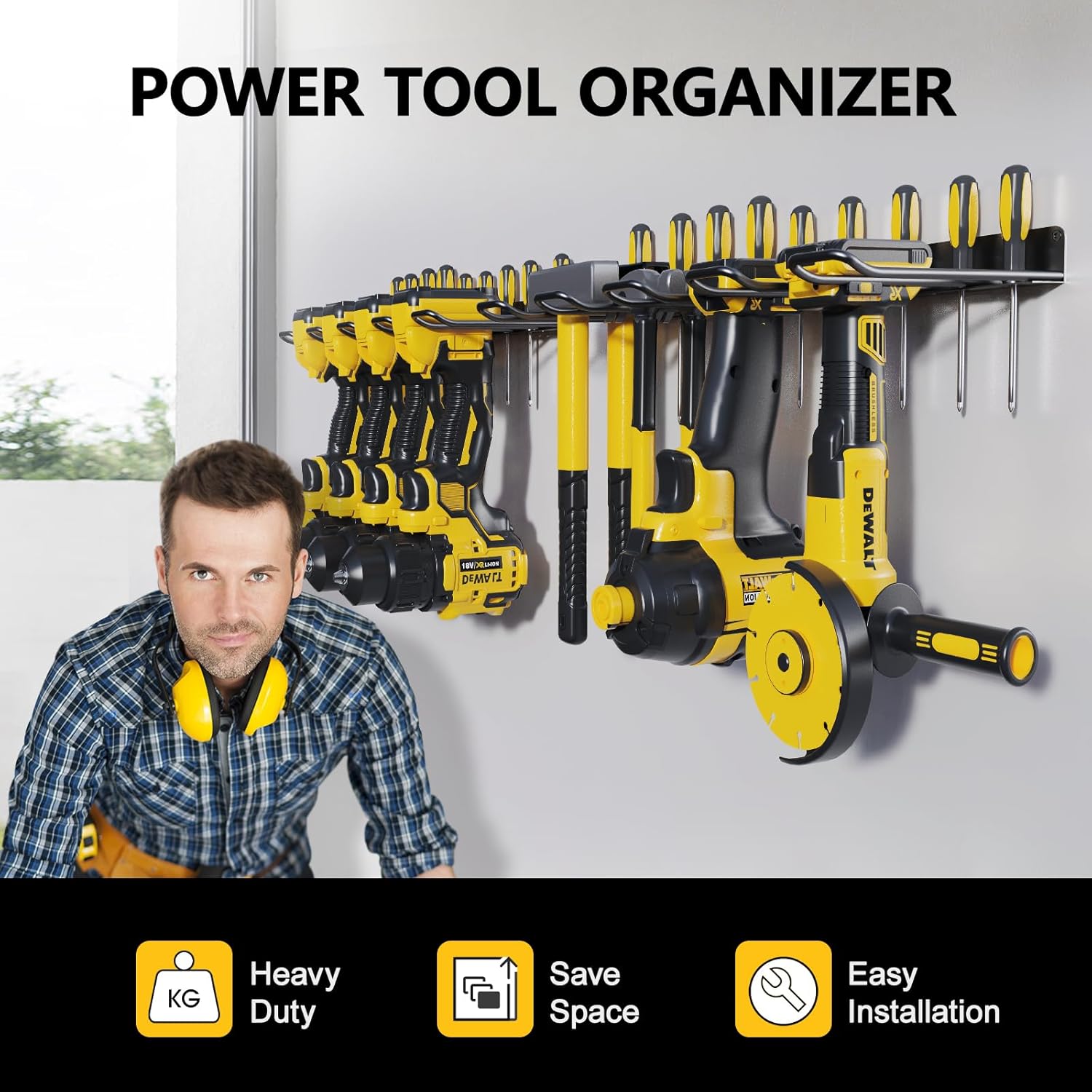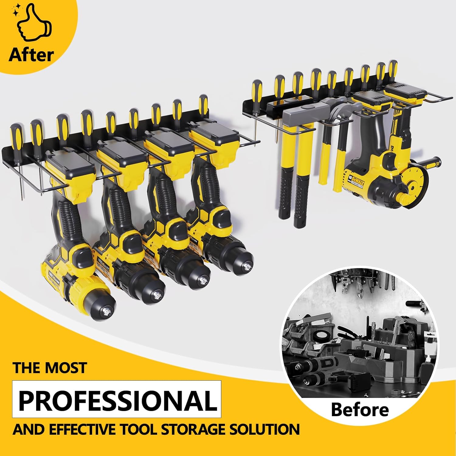 2 Pack Drill Holder, Power Tool Organizer Wall Mount, Heavy Duty Garage Storage and Tool Organizer, Ideal Garage Organization Gifts for man, 8 Slots for Power Tools and 32 Screwdriver Rack