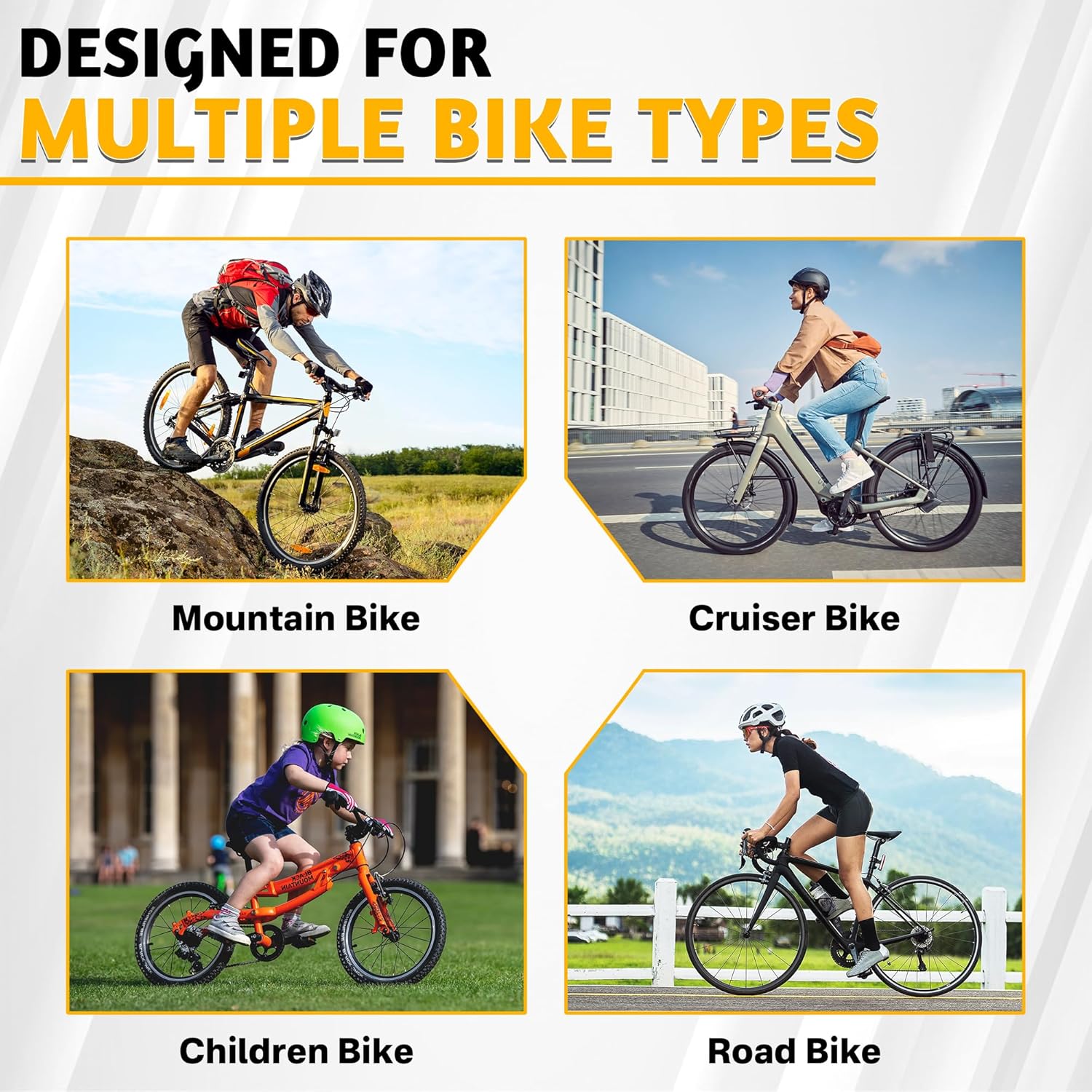 - Multi-functional bike rack: Designed for cycling enthusiasts, this rack includes 6 bike hooks and 6 helmet hooks, suitable for mountain, road, kids' bikes, and more. Both sides provide convenient storage for helmets, towels, backpacks, and other gear