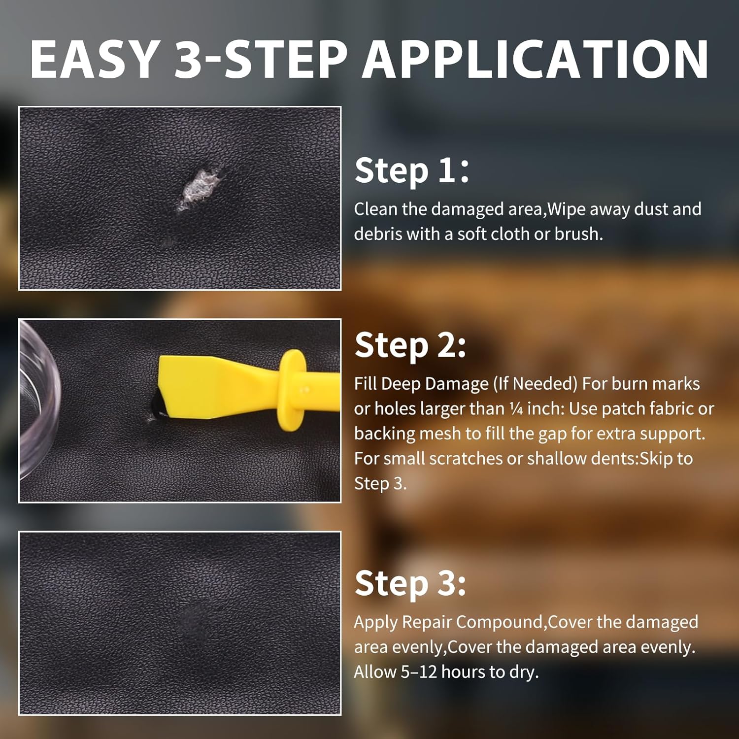 - Easy to Use:leather repair kit includes all necessary tools with a vividly illustrated manual.designed for effortless use, our step-by-step guide requires no professional experience - even first-time users can achieve professional results immediately.