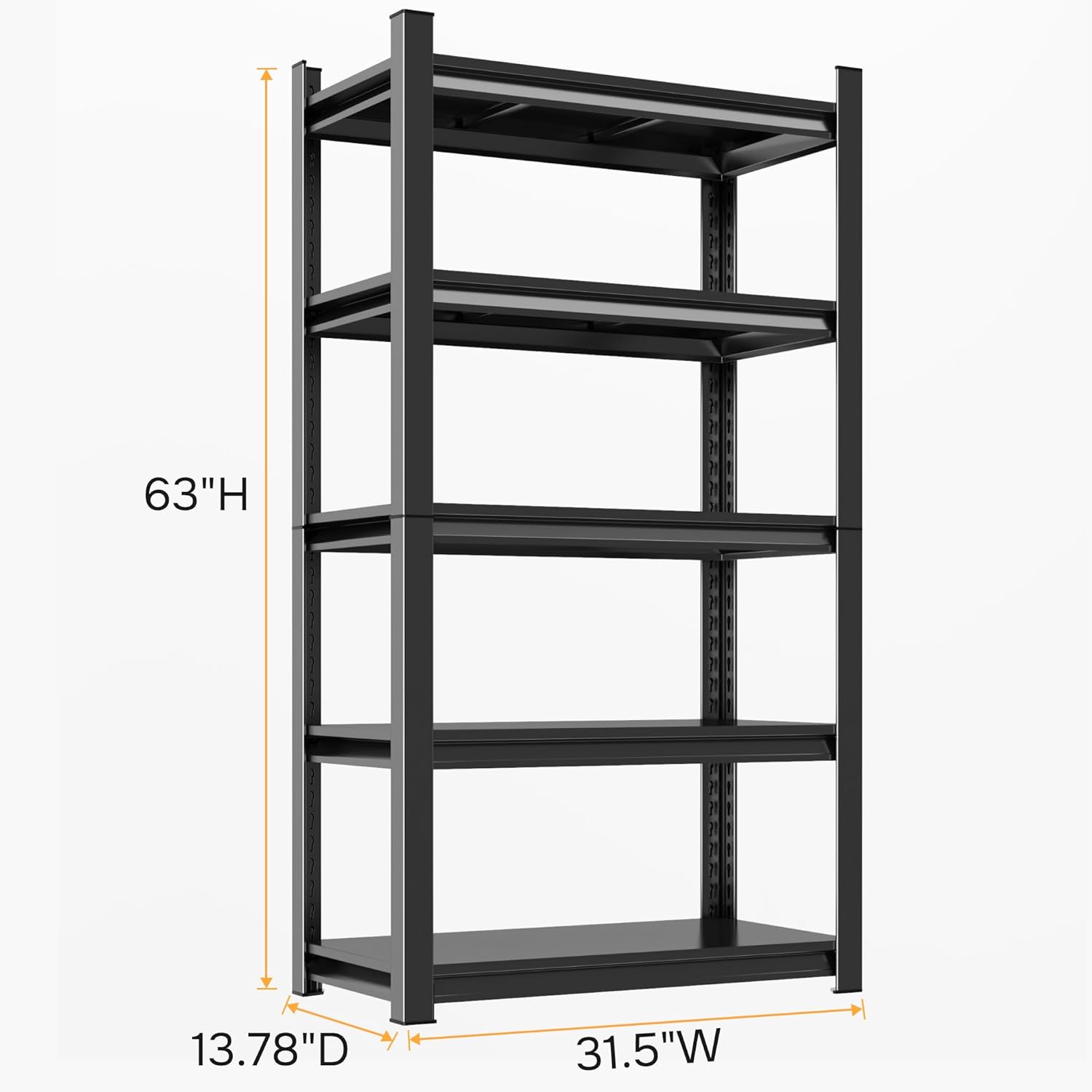63" H Garage Shelving 3000LBS Heavy Duty Shelving Units and Storage Shelves Adjustable 5 Tier Metal Shelving for Kitchen,Utility Room and Basement, 13.78" Dx31.5 Wx63 H, Black