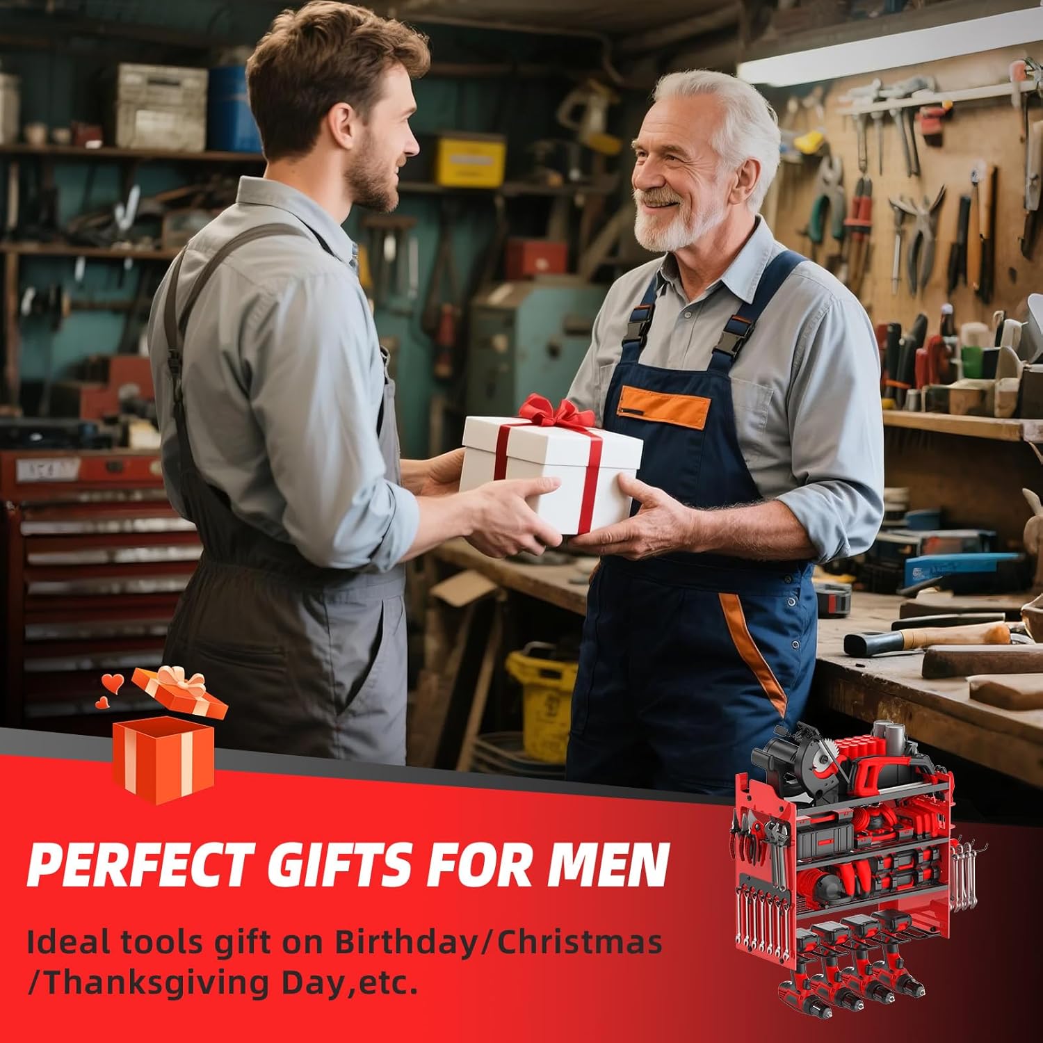 - 📏【PERFECT GIFT FOR MEN】This drill organizers and storage is ideal for garages,workshops,tool rooms,basements,workshops, factories and warehouses,A thouhtful gift for Men,father, husband, colleagues, boyfriend, brother on birthdays, Christmas, Thanksgiving Day or any special holidays. This sturdy battery powered tool storage is a must-have for any DIY enthusiast or professional seeking efficient storage solutions.