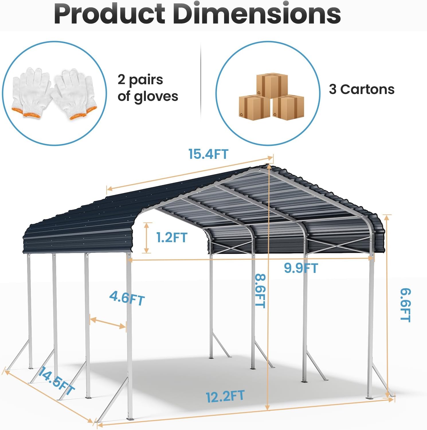- All-Weather Protection: Sturdy 2‘’ x 2‘’ frame and 27-gauge sheet metal roof provide reliable protection for your vehicle and outdoor equipment from rain, snow, and sun all year round