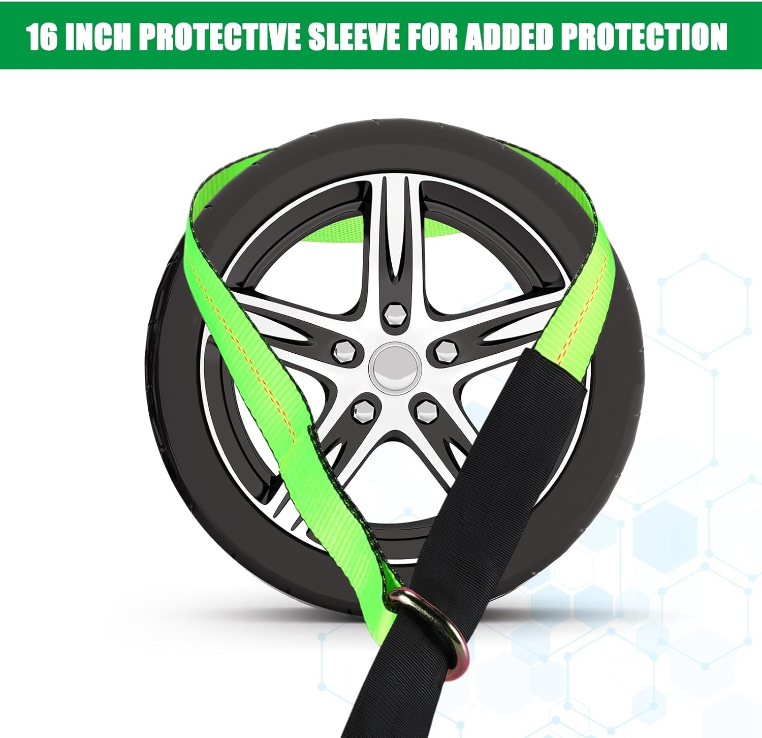 - Sturdy Construction: made from reliable materials, these lasso wheel lift straps have a combination of strong polyester and steel; This reliable construction not only brings the durability of the straps but also provides a breaking strength of massive 11, 000 lbs and a working load limit of 3, 333 lbs; With our carefully constructed straps, you can tow with confidence