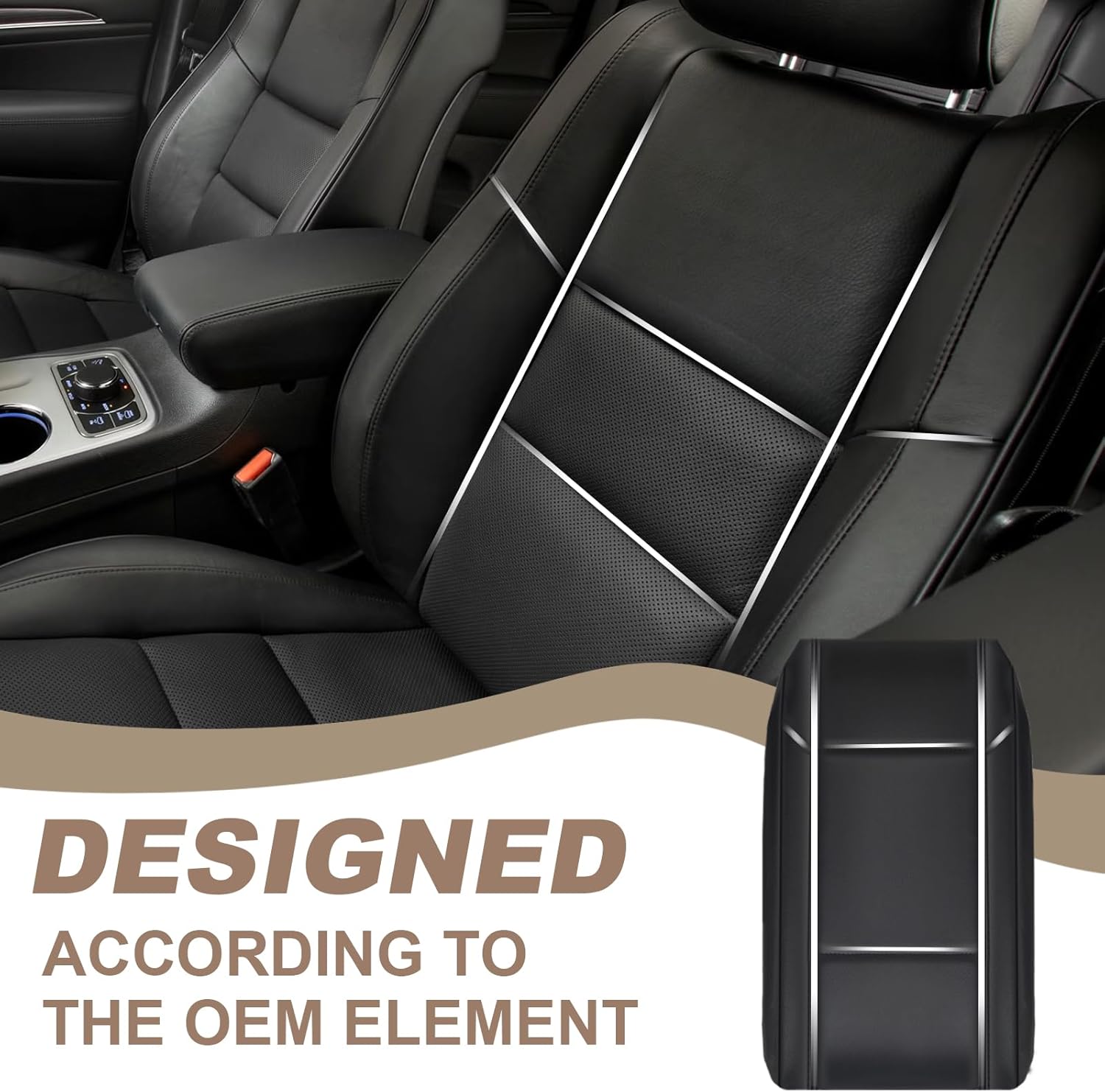 Muslogy Center Console Armrest Cover Compatible with Jeep Grand Cherokee 2011-2021 Comfort Armrest Pad Arm Rest Cushion Vegan Leather Protector Regular Thick