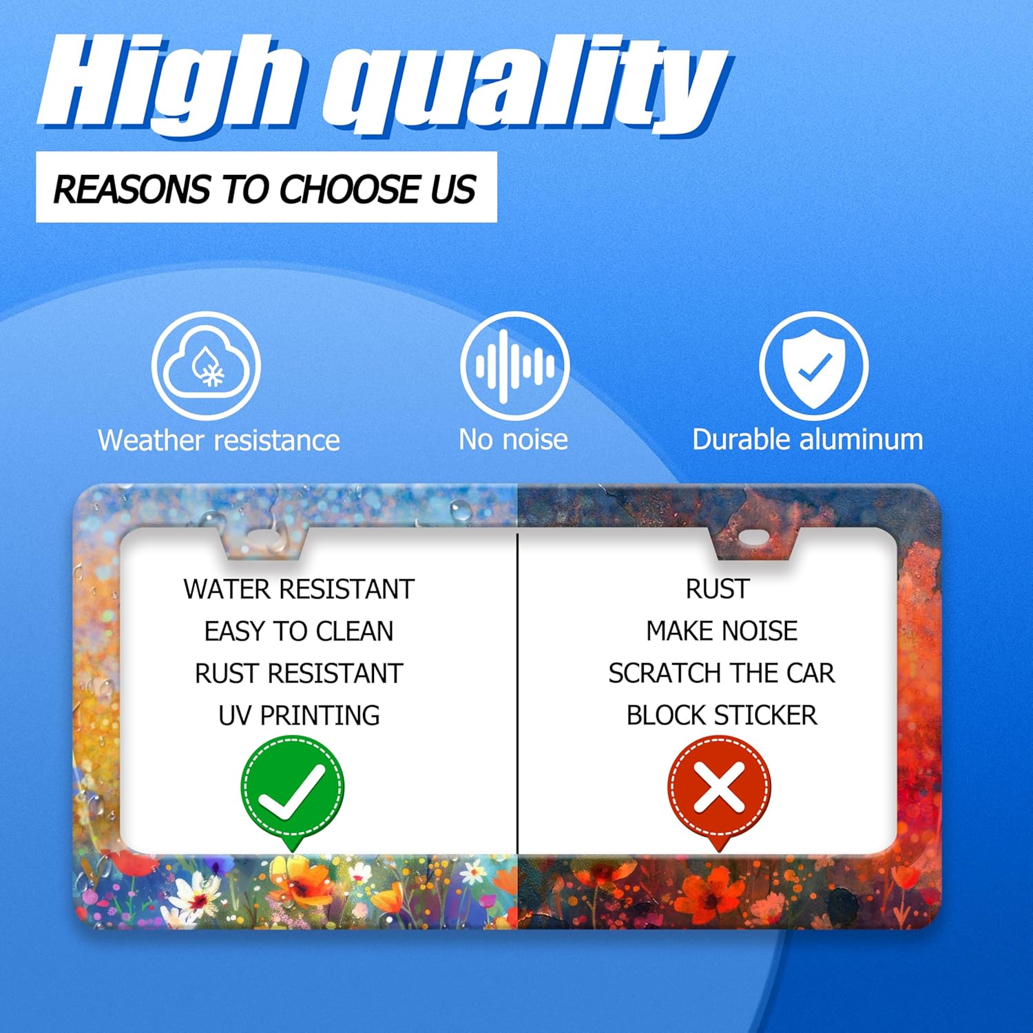 Abstract Floral License Plate Frame Watercolor Flowers License Plate Stainless Steel Funny License Plate Holder for Women Colorful Car Accessories Decoration 12.3" x 6.3"
