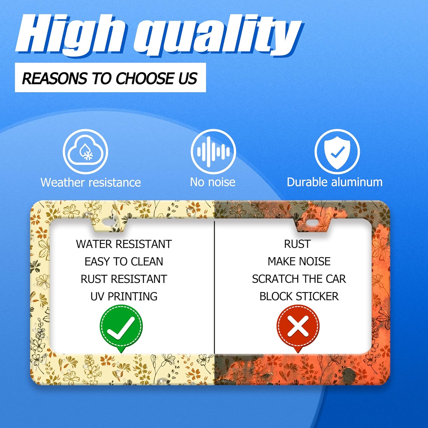 Yellow Wild Flowers License Plate Frame Colorful Flower Floral License Plate Stainless Steel Funny License Plate Holder for Men Women Universal Car Accessories Decoration 12.3" x 6.3"