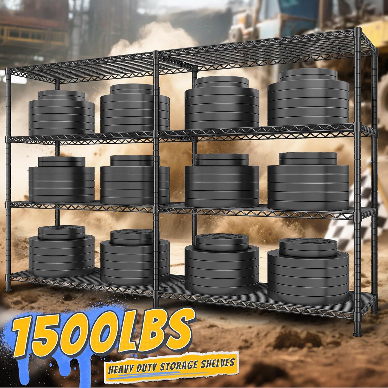 REIBII 72.8" W Storage Shelves Load 1500LBS, 4 Tier Metal Shelving Unit Wire Shelving for Storage Rack Heavy Duty Metal Shelves for Garage Pantry Kitchen, 17.7" D x 72.8" W x 59" H