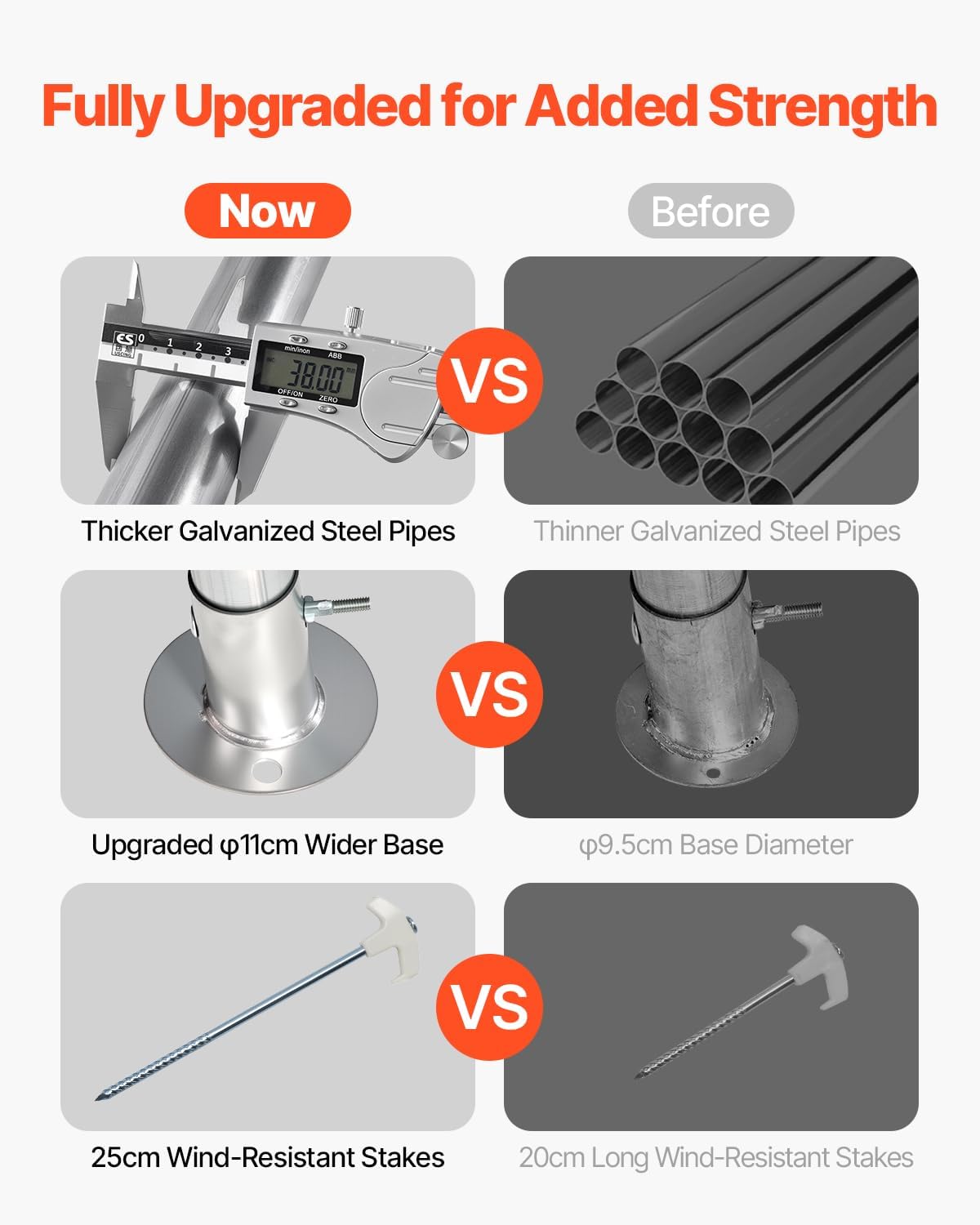 - Heavy-Duty Metal Frame: This large 6x8 ft portable storage shed is built with galvanized steel pipes, with a pipe diameter of 38mm and wall thickness up to 0.7mm. This makes it resistant to cracking, peeling, rusting, and corrosion, ensuring stability and security even in harsh weather conditions.