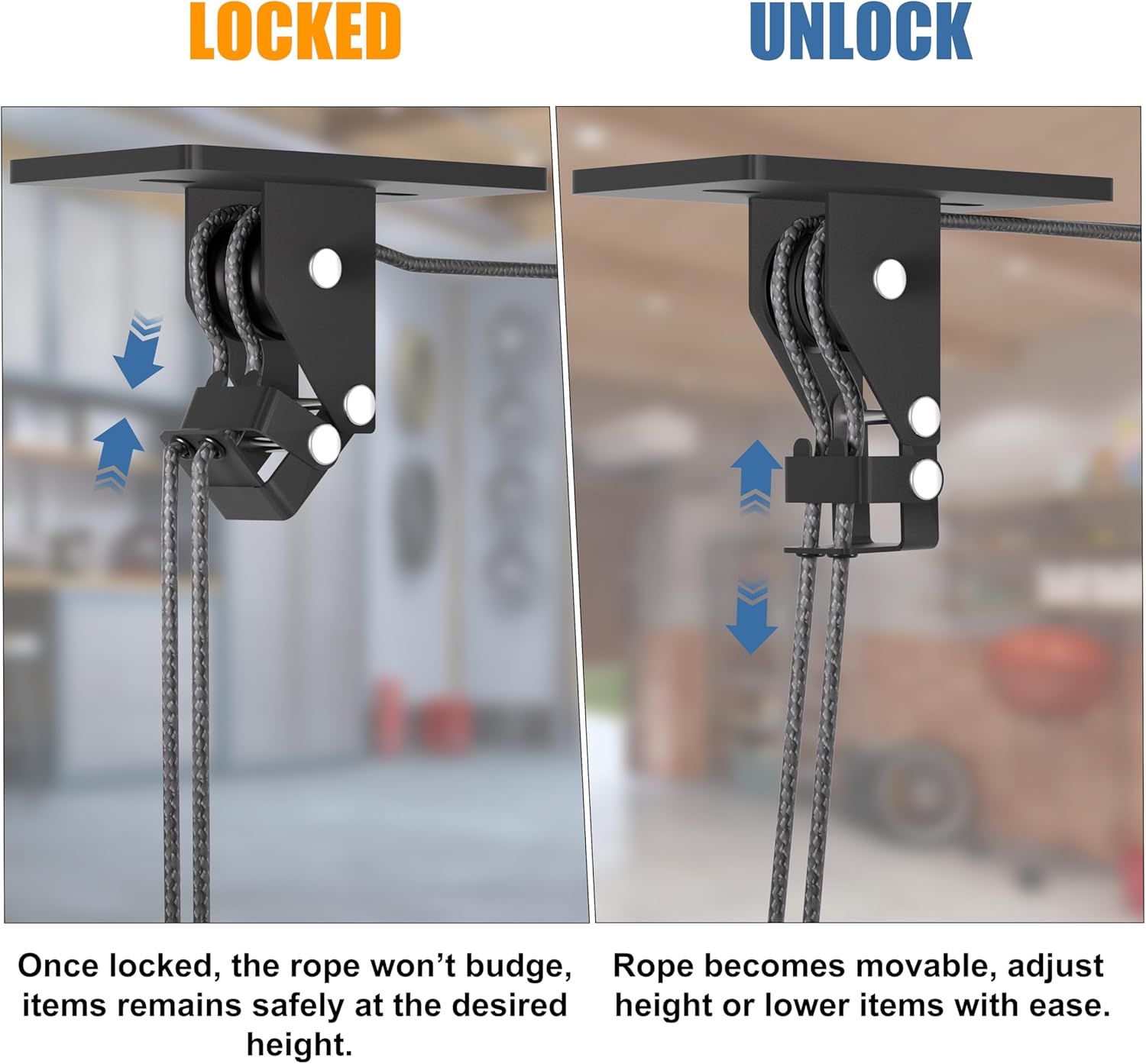 - QUICK & EASY INSTALLATION: Mount directly onto ceiling joists using the included premium hardware. From setup to daily use, our ceiling pulley system for roof box designed every detail to be intuitive and lasting.