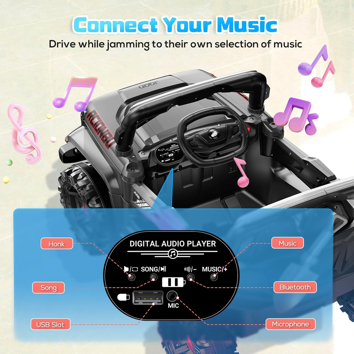 - MULTIPLE AND JOYFUL FUNCTIONS: Our 12V ride on car has a built-in music player, can connect Bluetooth and USB, the little drivers can enjoy songs and stories while driving. In addition, the start button, lighting control, music player and speed button are all very user-friendly, adding an extra layer of enjoyment to the driving experience.