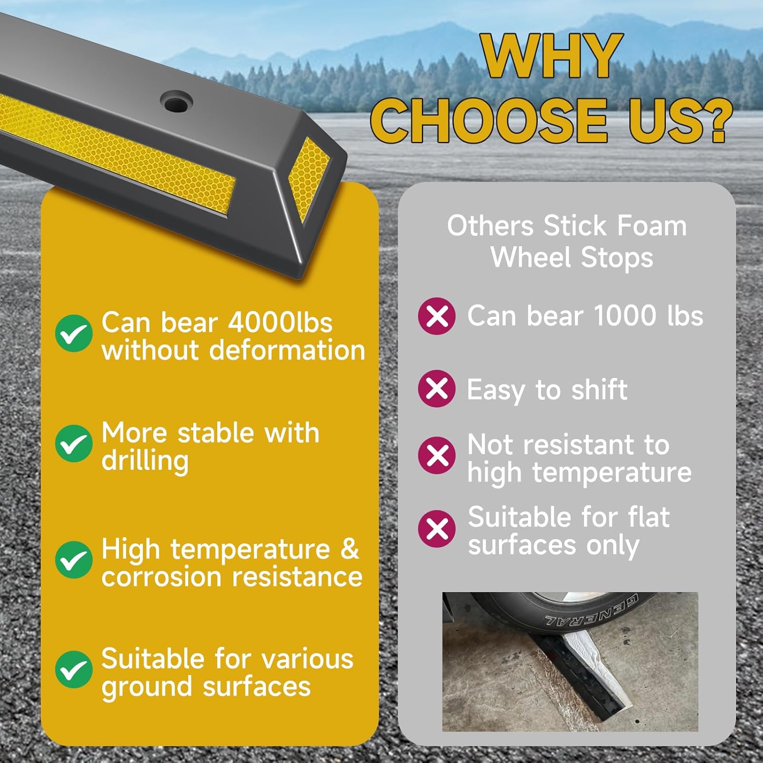 - Versatile Application: This polypropylene parking locator block is perfect for garages, driveways, parking lots, shopping centers, and storage facilities. It helps drivers park precisely every time, protects walls, other vehicles, and property from damage, and maintains order in parking areas.