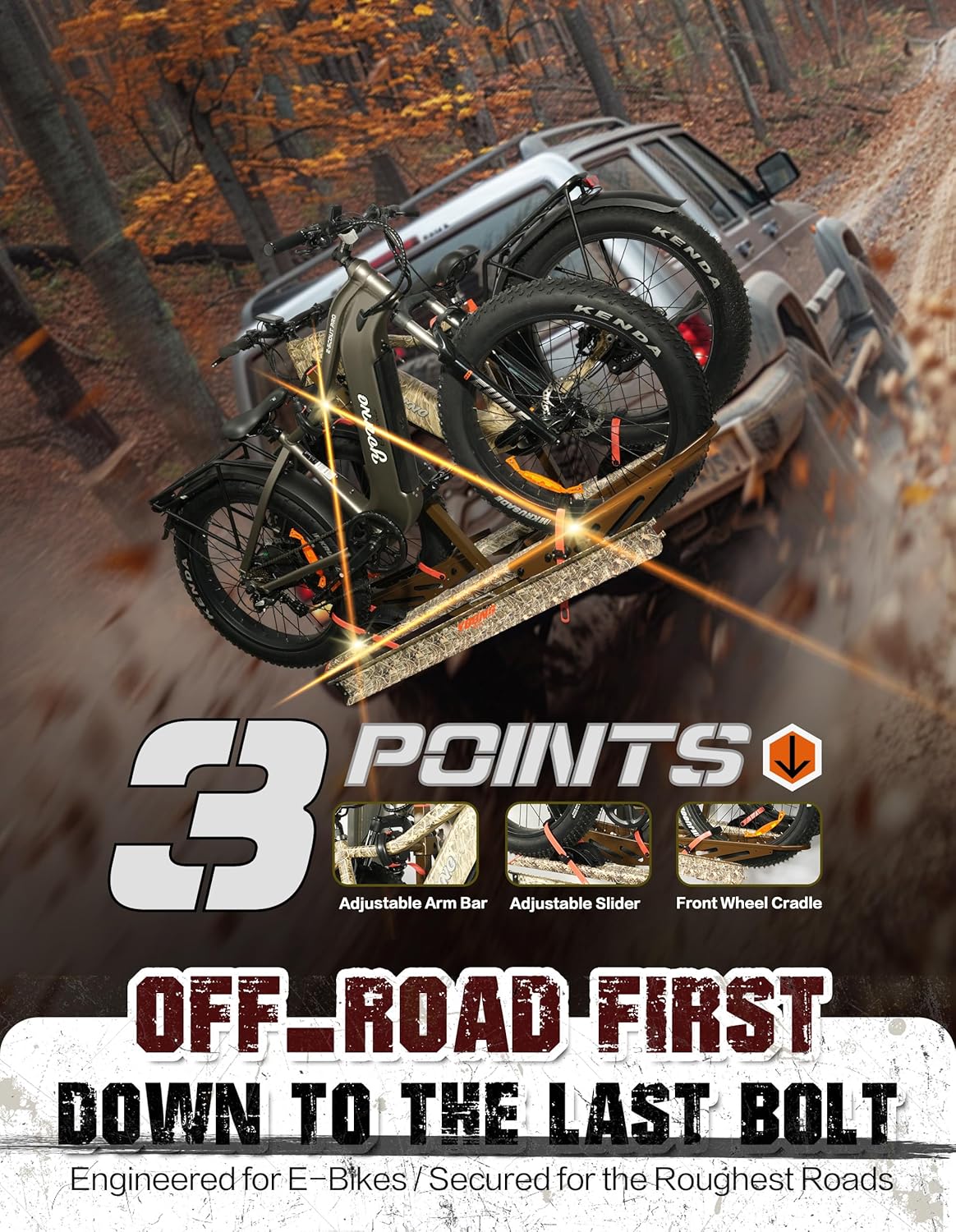Young Hitch Bike Rack for 2 E-Bikes, Heavy Duty Platform Carrier, 200lbs Capacity, Foldable, Fat Tire, Electric Bike, Hitch Mount, SUV, Truck, RV, Car, 2" Receiver, Anti-Wobble, Camo