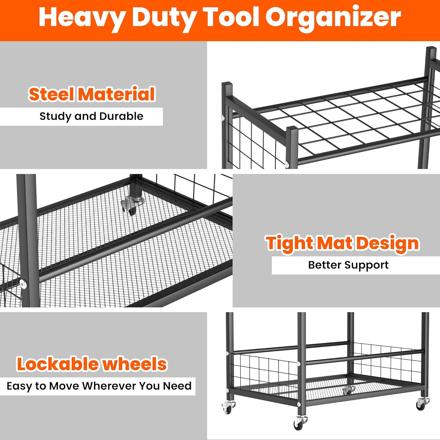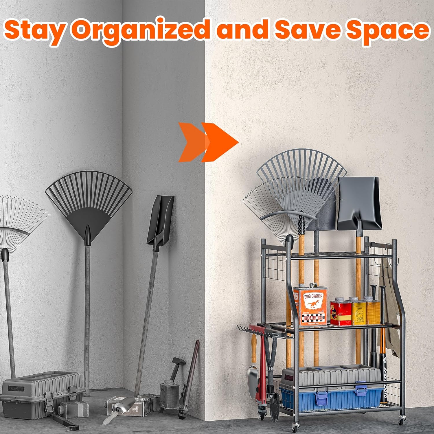 Ultrawall Garden Tool Organizer, Yard Tool Storage Stand for Garage with Lockable Wheels, Shed Tool Storage for Rake, Brooms, Indoor & Outdoor Use