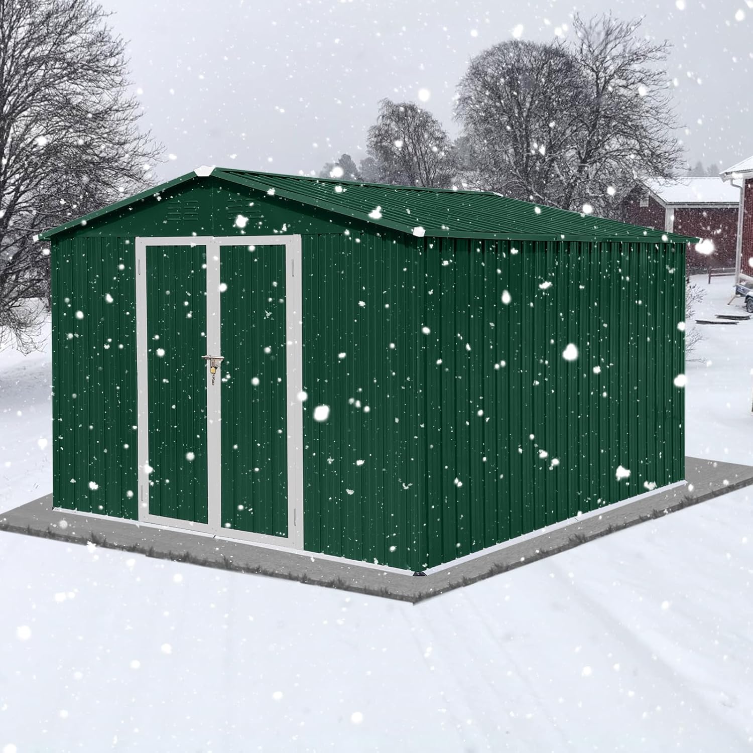 10 x 8 FT Outdoor Storage Shed, Metal Garden Tool Shed with Slooping Roof, Lockable Doors and Aluminum Frames, Easy to Assemble for Garden, Patio, Lawn, Green