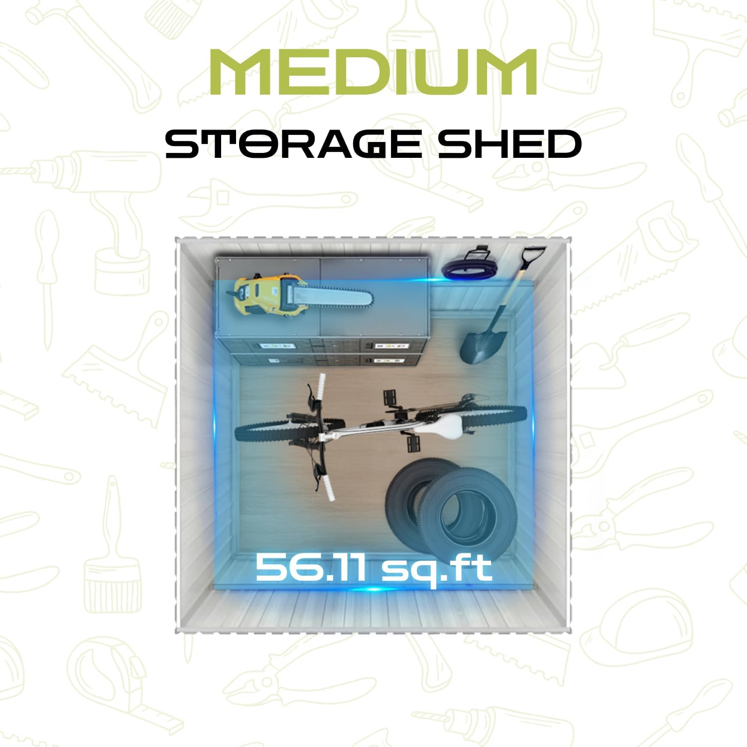 - 【Spacious & Multi-Functional】This 58.24 sq.ft outdoor storage shed offers versatile space for gardening tools, seasonal gear, or as a compact workshop, featuring 4 vents and a translucent window to prevent humidity damage
