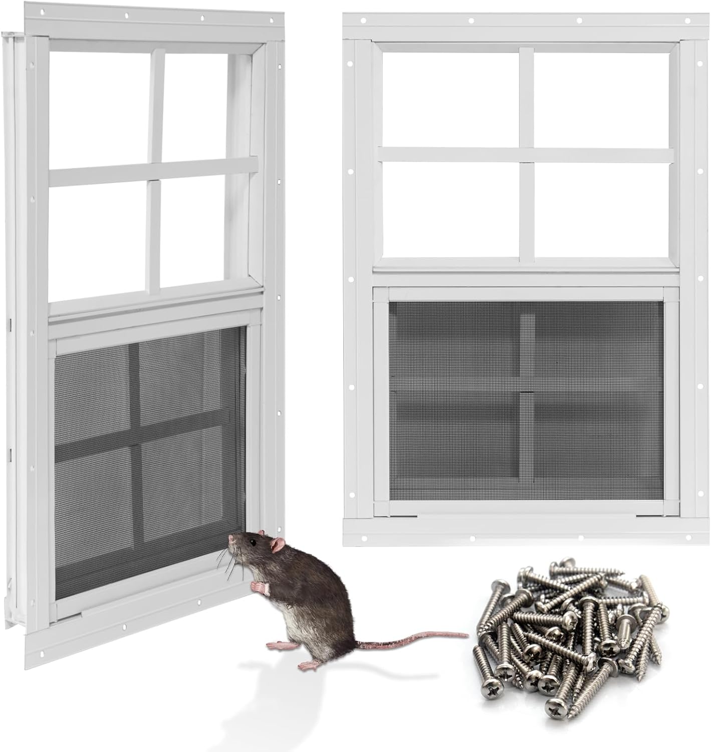 - 【Multifunctional】It provides both effective ventilation and full sunlight to the interior of your shed. The shed window comes with tempered glass that is wind and rain resistant and won't shatter. While regular screens only keep out insects, our upgraded stainless steel mesh also blocks rodents and larger animals – it's strong enough to stop them.
