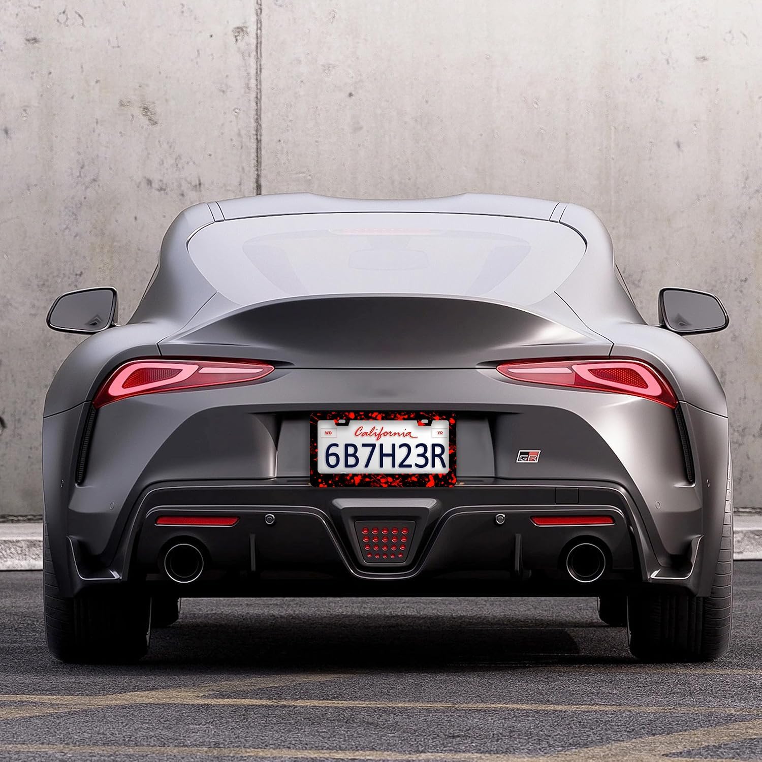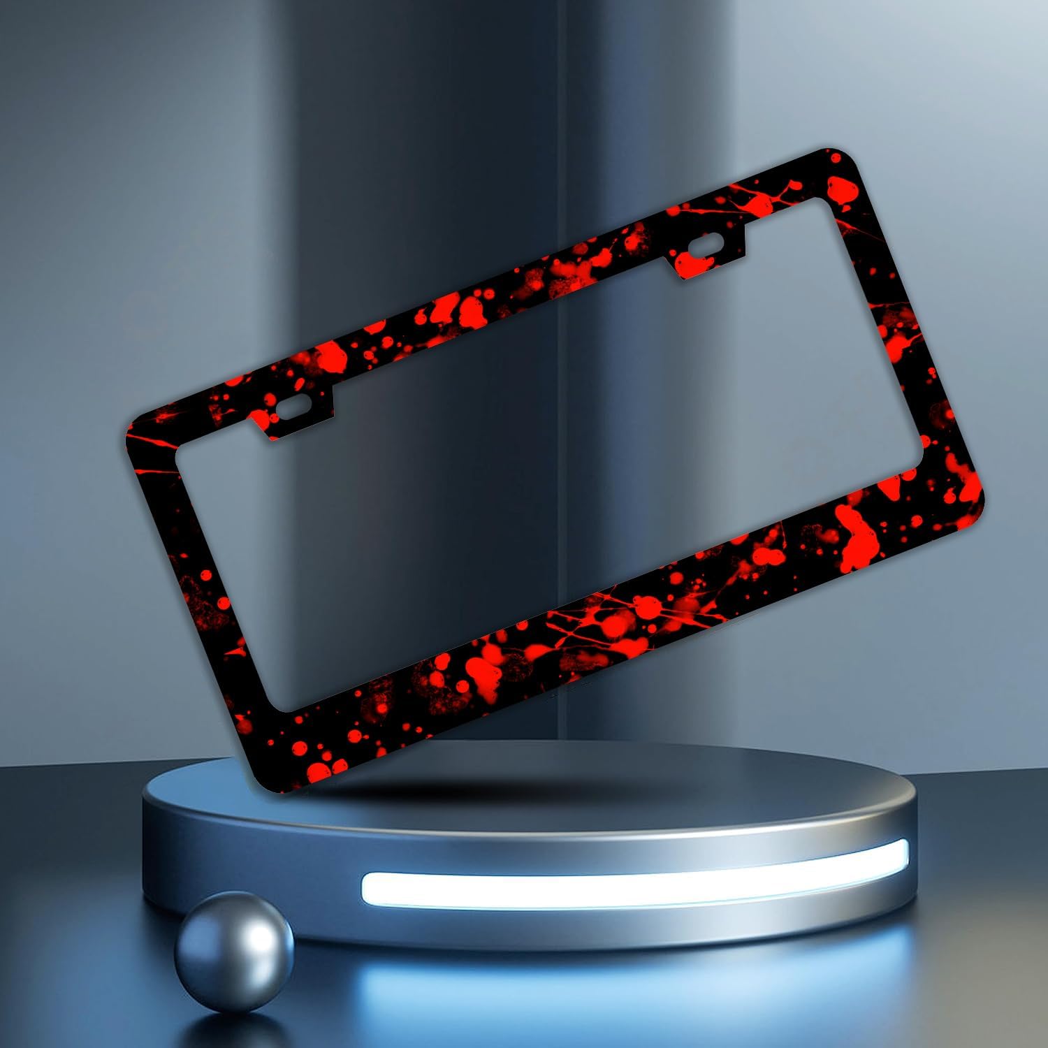 Blood Splattered Red Black License Plate Frames - 2 Pcs Set 2 Holes Stainless Steel Metal Auto Car Accessories Decoration License Plate Frame Cover Size 6.3" x 12.2" Fit US Vehicles for Women Men Gift