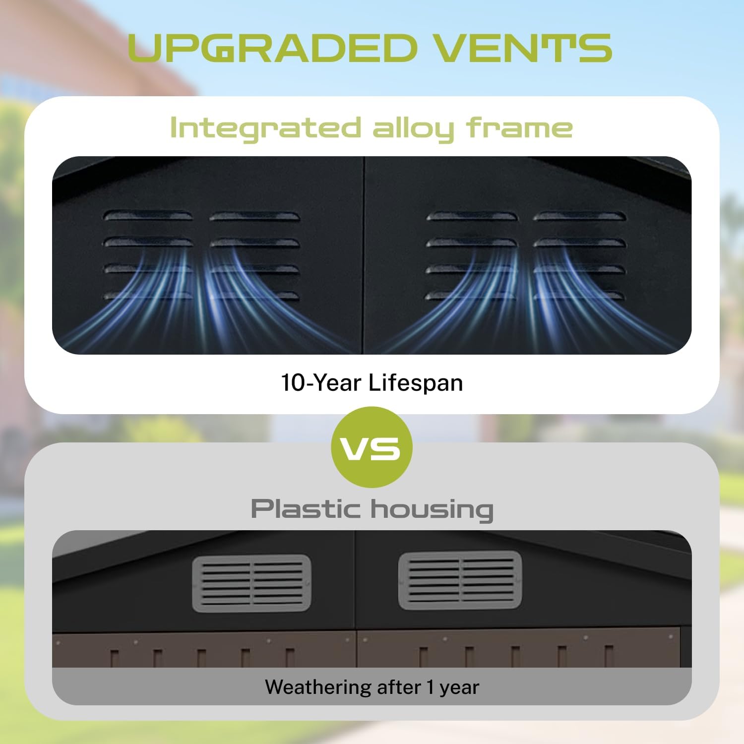 - 【Spacious & Multi-Functional】This 24 sq.ft outdoor storage shed offers versatile space for gardening tools, seasonal gear, or as a compact workshop, featuring 4 vents to prevent humidity damage