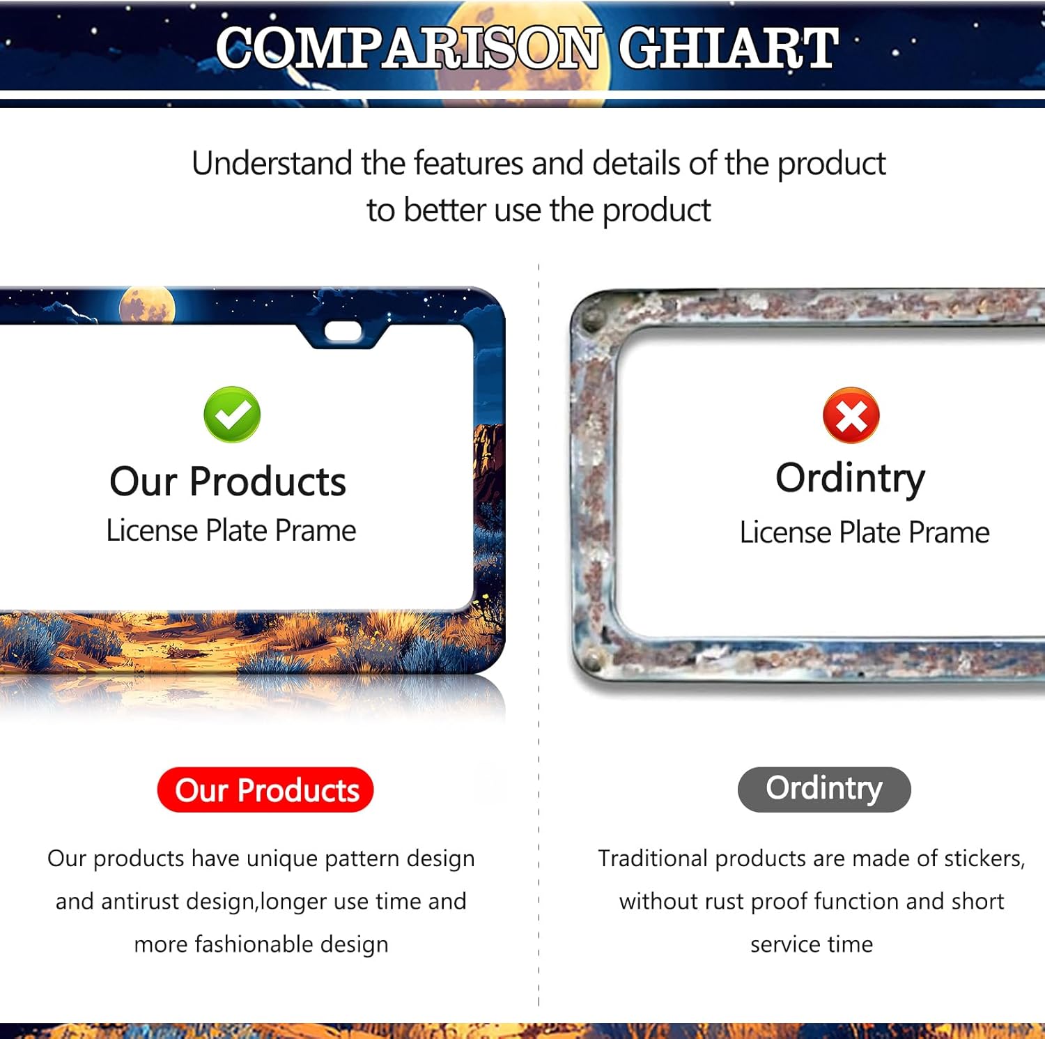Moon License Plate Frames - 2 Pack Starry Sky Moonlight Stainless Steel License Plate Holder,Rust-Proof Waterproof Car Decorative Tag Frame with Screws Fasteners Caps