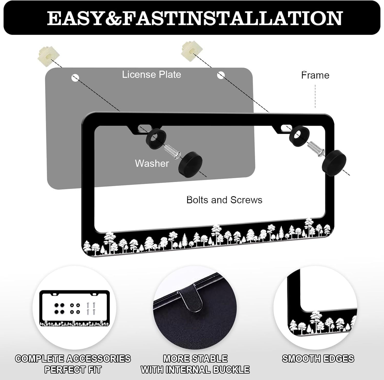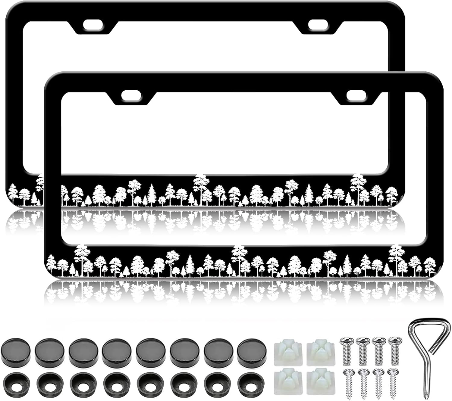 Forest License Plate Frames - 2 Pack Forest Tree Black Stainless Steel License Plate Holder,Rust-Proof Waterproof Car Decorative Tag Frame with Screws Fasteners Caps