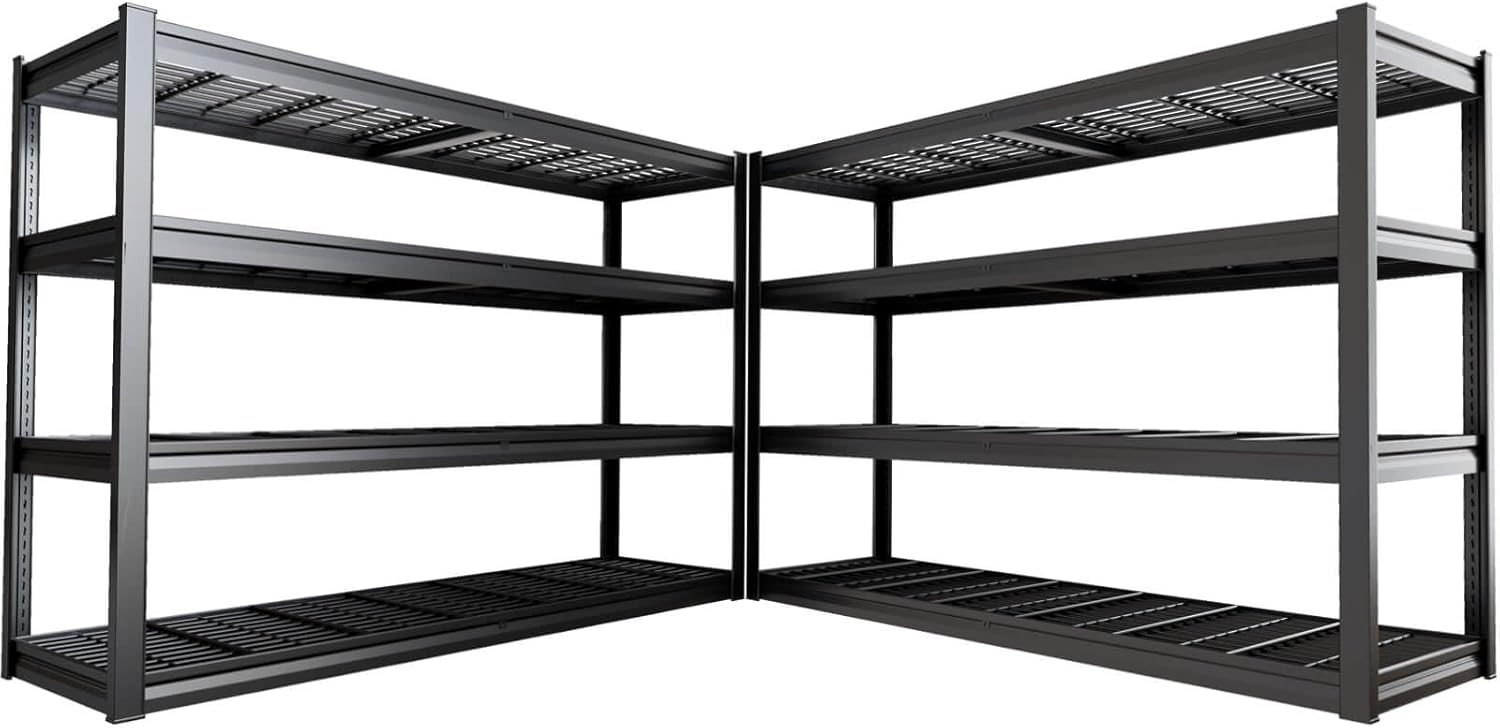 - ăHeavy-Duty Reinforced Metal ConstructionâăCrafted with extra-thick, widened, and hardened steel, this 4-tier garage shelving unit delivers unmatched durability for long-term storage. The all-metal build ensures robust support, ideal for heavy tools, equipment, and bulky items.