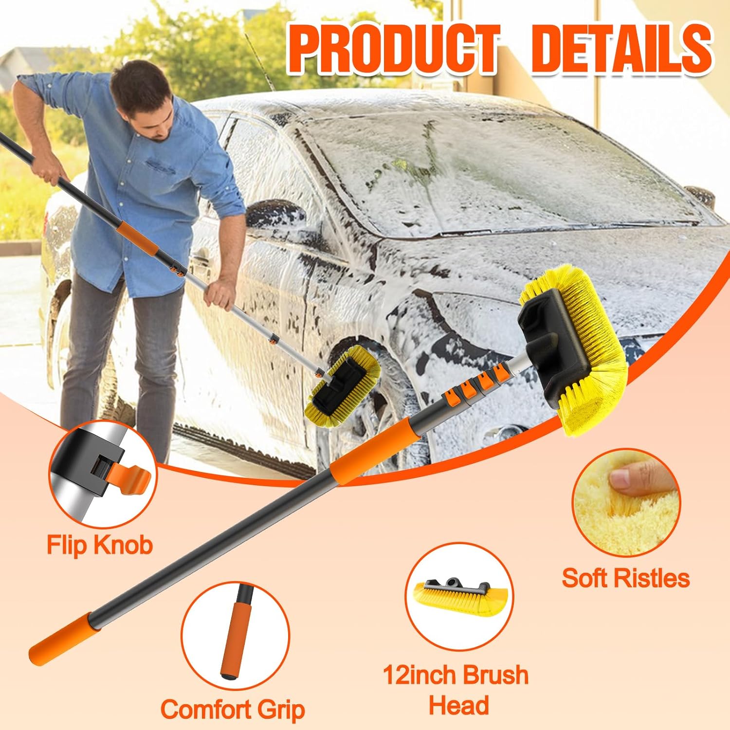 - Soft, Paint-Safe Bristles for Efficient Cleaning: Equipped with 12 inches of soft bristle cleaning brush head, made of high-quality PVC material, the car cleaning brush is delicate and resistant to deformation. It gently removes stains while protecting car paint, glass, solar panels, and other surfaces from scratches. The large coverage design significantly enhances cleaning efficiency. The characteristics of the soft bristle brush make it an ideal choice