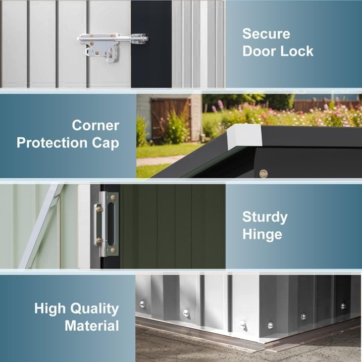 - Sturdy Frame Structure – This metal tool shed comes with a durable frame only, without a foundation, allowing flexible placement on various surfaces.