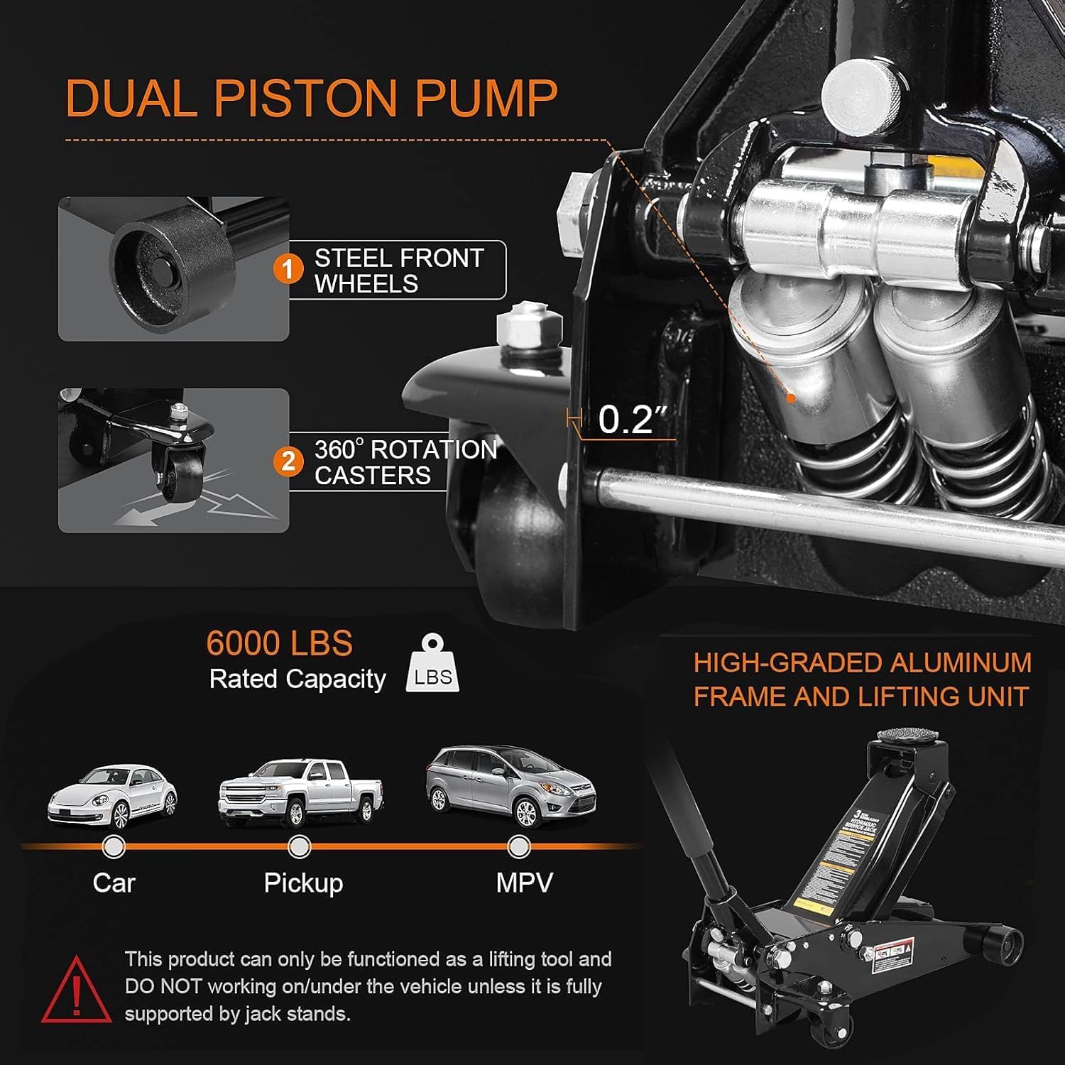 3 Ton Floor Jack Hydraulic Jack for Car with Dual Pumps, Quickly Lift for Cars, SUVs, Vans, Trucks, Heavy-Duty Steel Racing Floor Jack, 6600 lb Capacity