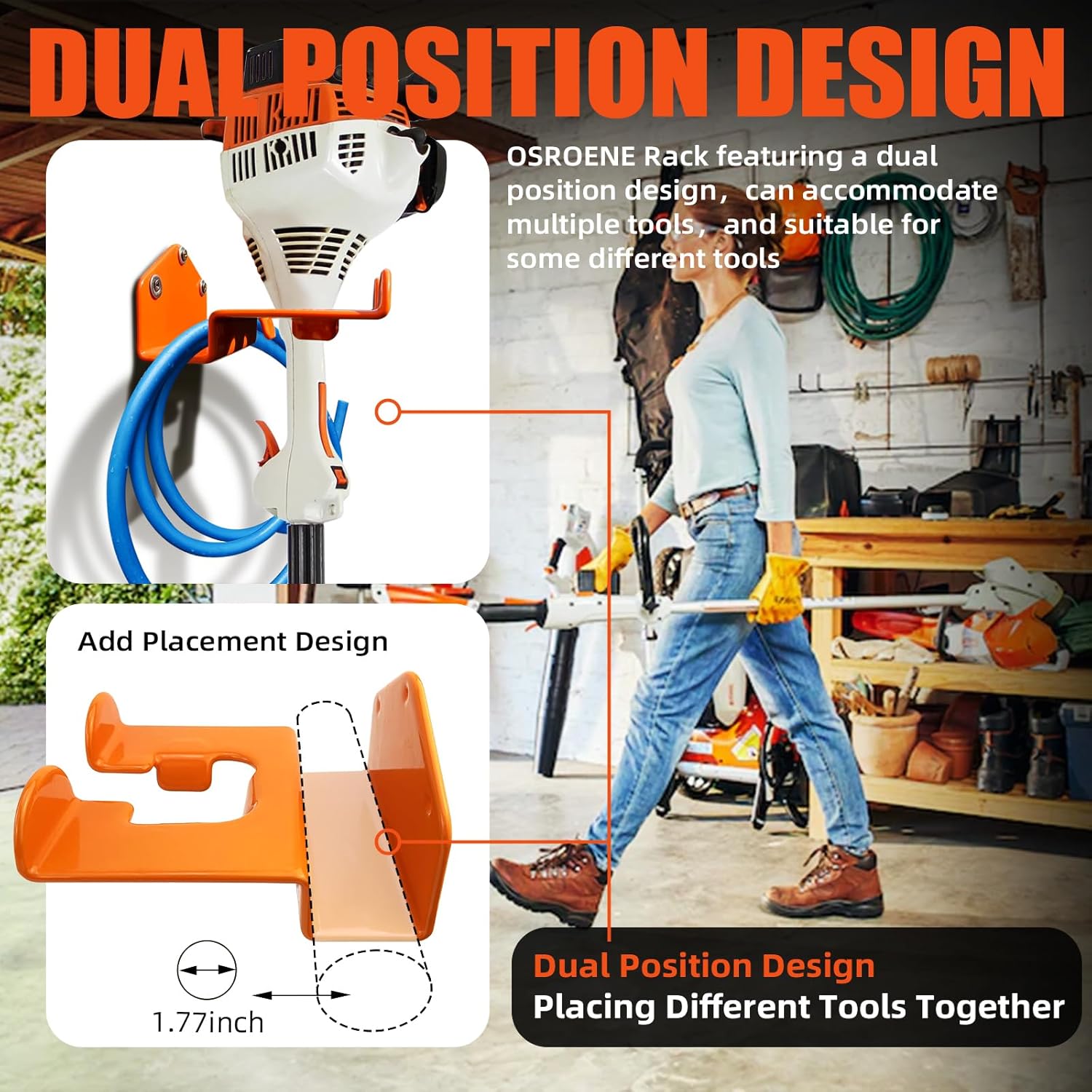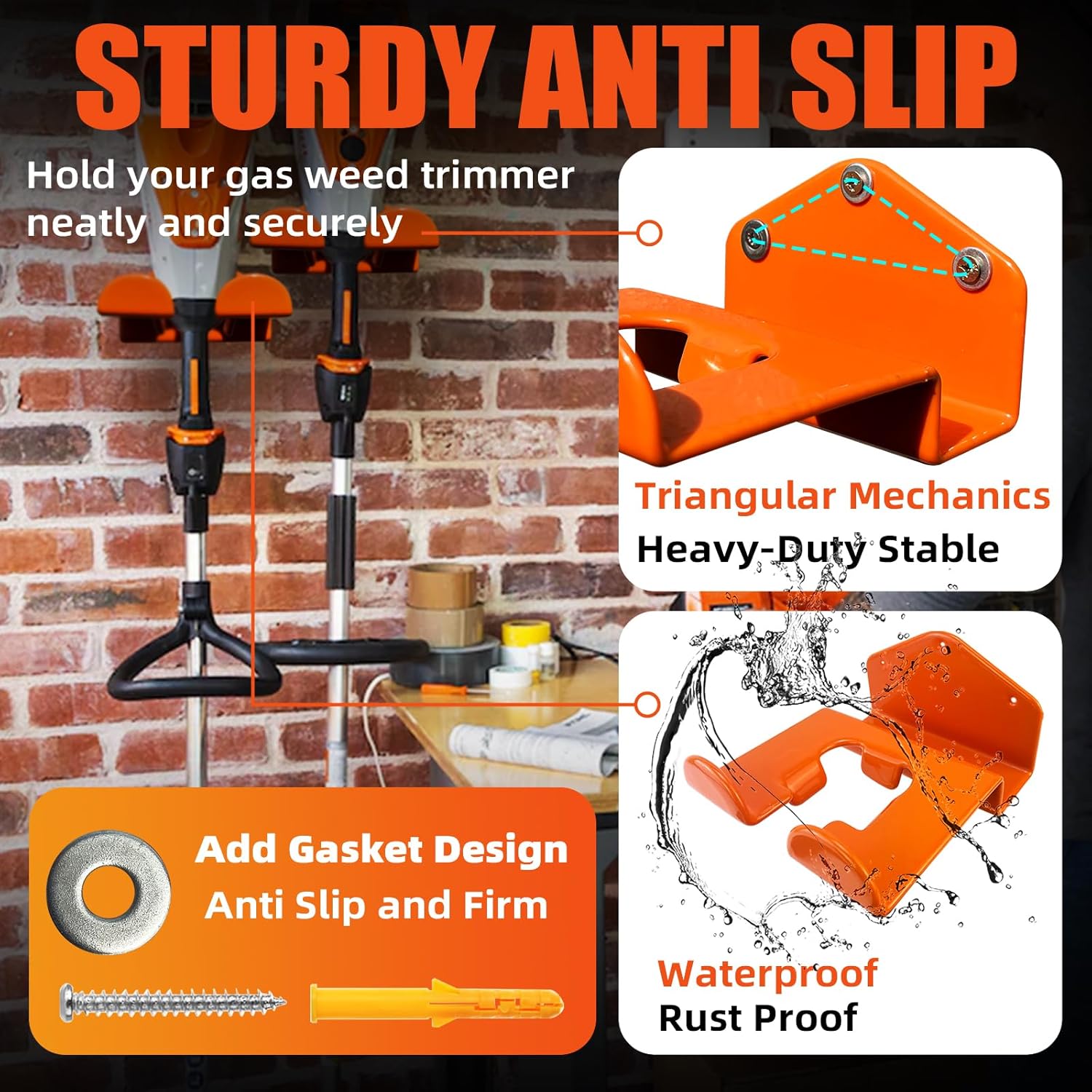 - Tool Holder for Multiuse: Heavy Duty Hangers Wall Mounted Grass Trimmer Rack sturdy and stand wear and tear,This is an excellent garage storage solutions,Install it,it can hold up to various tools in your garage or yard. Like garden power tool and hedge trimmer.