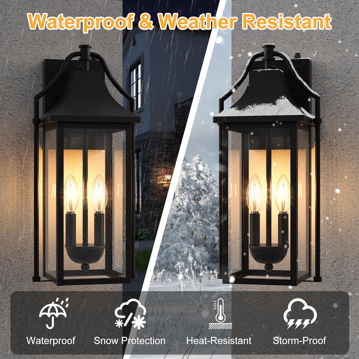 - WEATHER-RESISTANT WALL SCONCE: Constructed with sturdy metal frame and thickened glass panel, the outdoor wall lantern features excellent corrosion resistance, rust protection, and waterproof capabilities. This porch lights outdoor maintains its stylish appearance even after years of exposure to the elements