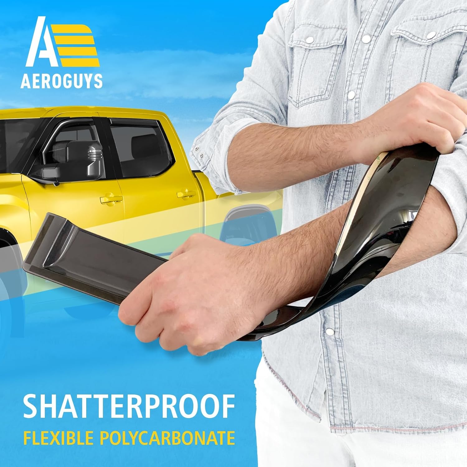 - Incredibly Durable AEROGUYS Auto Window Deflectors β They are made with strong and tough polycarbonate which is clear and scratch-resistant. They also provide UV protection making your ride more comfortable under all weather conditions.