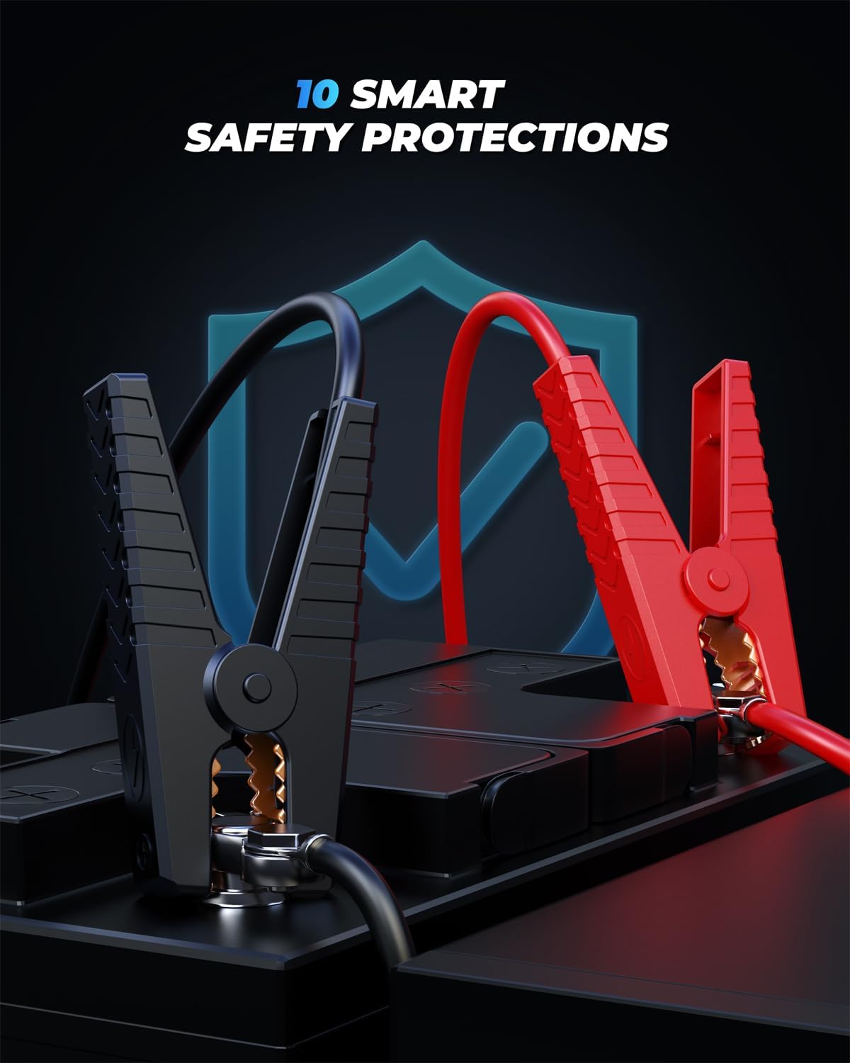 - 5000A battery pack power supply:VoltSurge car battery charger with 5000A peak, safely start the 12V vehicles in seconds with this booster(up to All Gas 8.0L Diesel Engine), up to 50 jump starts on a single charge. It is suitable for cars, trucks, motorcycles, boats, RVs, tractors, lawnmowers, snowmobiles, etc