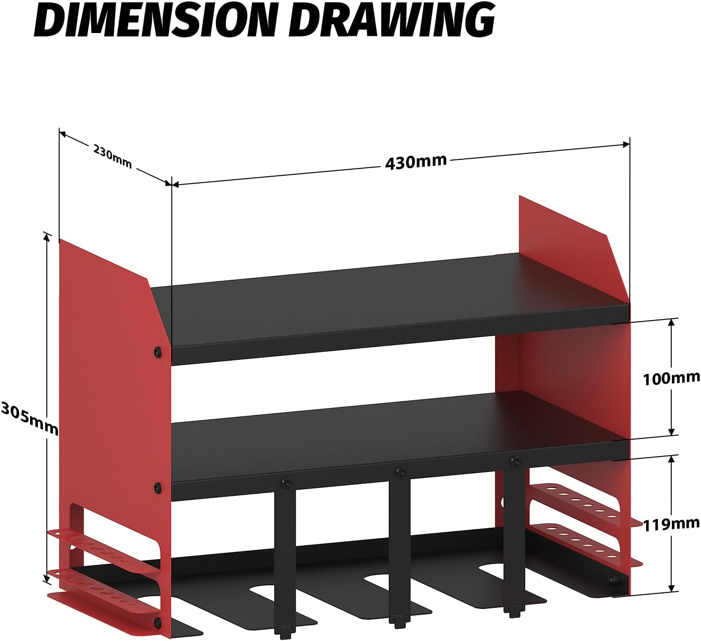 - MULTI-FUNCTIONAL POWER TOOL STORAGE: Power tool storage can be installed according to your needs to the middle of the components, positive installation is the conventional installation, reverse installation is the tray type of tool organizer wall mount, the middle of the shelf has a baffle, you can store some very small items, such as: screws, pins and other easy to fall parts, left and right sides of our design is specifically designed to store screwdrivers, hexagon socket, and other small tools, we designed a two-layer used to fix! These tools, they will not fall over.