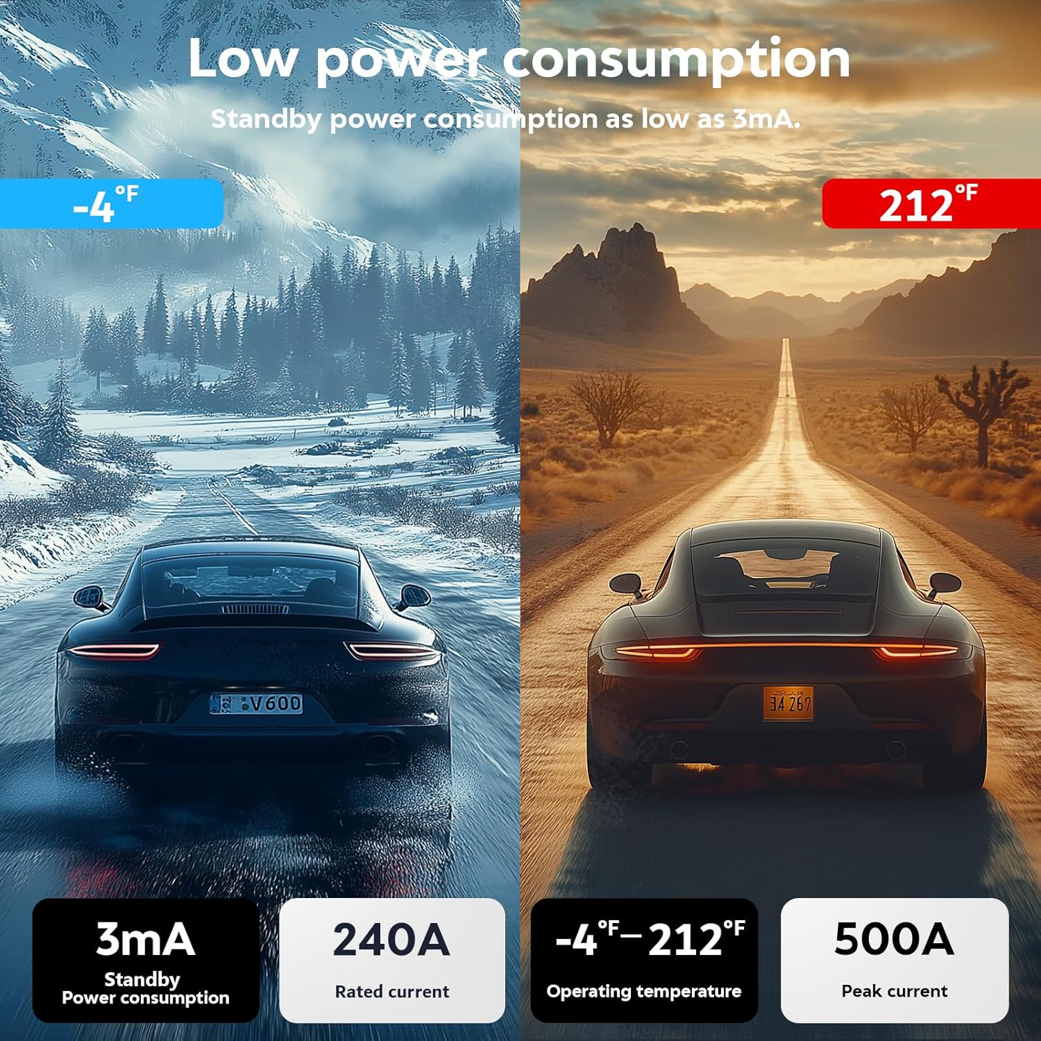 - ăSmart Working PrincipleăAutomatically cuts power after 120 seconds when voltage drops below 11.8V to save energy. Remote control disables when voltage exceeds 13.3V to prevent accidental shutdowns while drivingâonly manual button control available