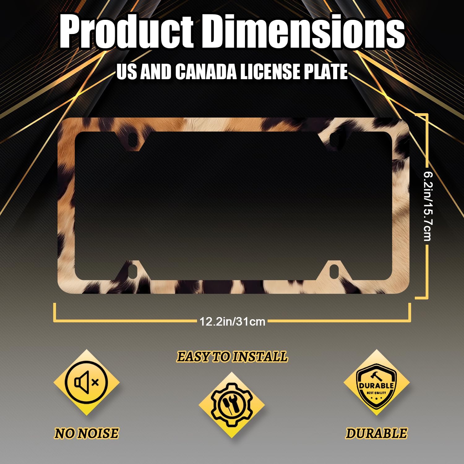 Vintage Brown White Cow Print License Plate Frame Animal Spots License Plate Stainless Steel Colorful Accessories Cars Decor 12.2 X 6.2 Inch with 4 Holes and Screws Fits Standard Us Ca Vehicles