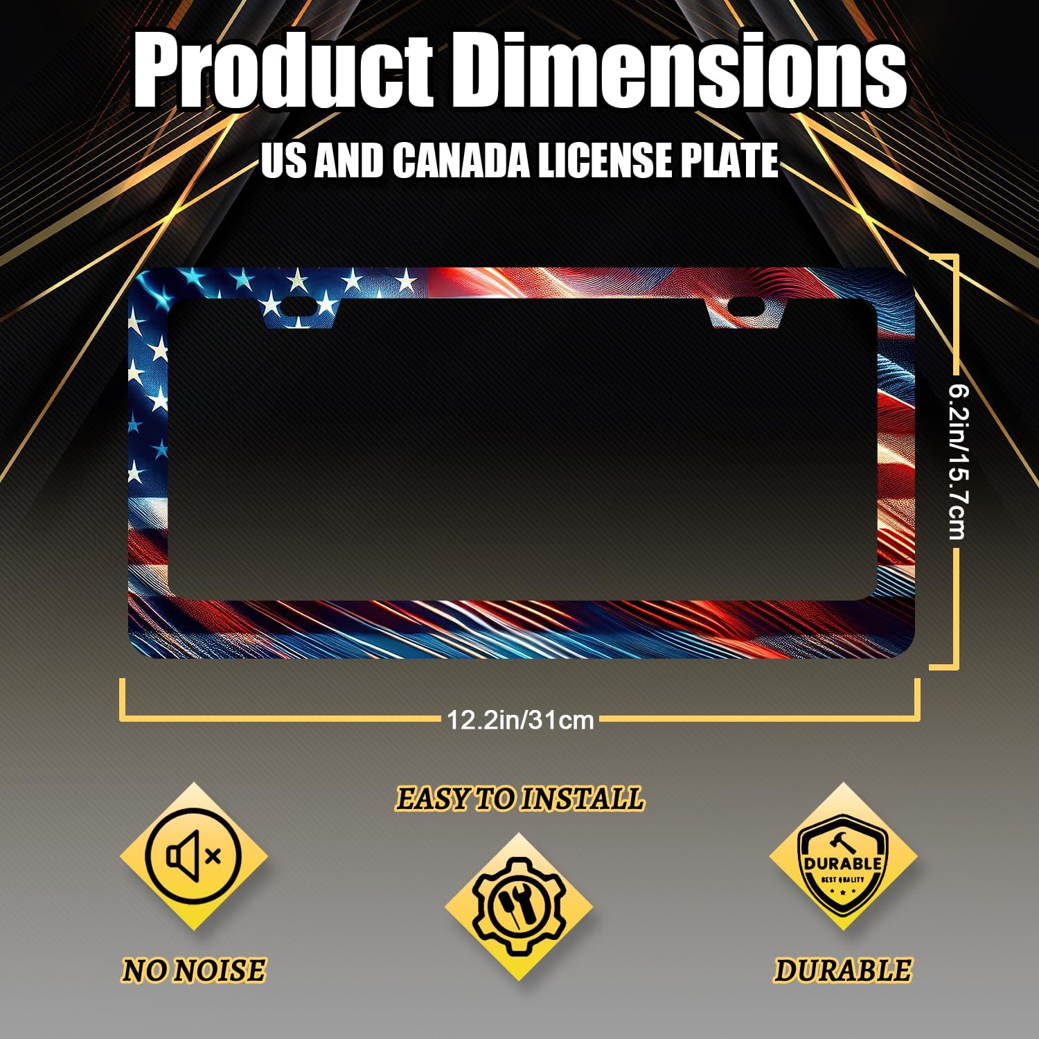 Patriotic American Flag License Plate Frame USA License Plate Stainless Steel Funny Accessories Cars Decor 12.2 X 6.2 Inch with 2 Holes and Screws Fits Standard Us Ca Vehicles