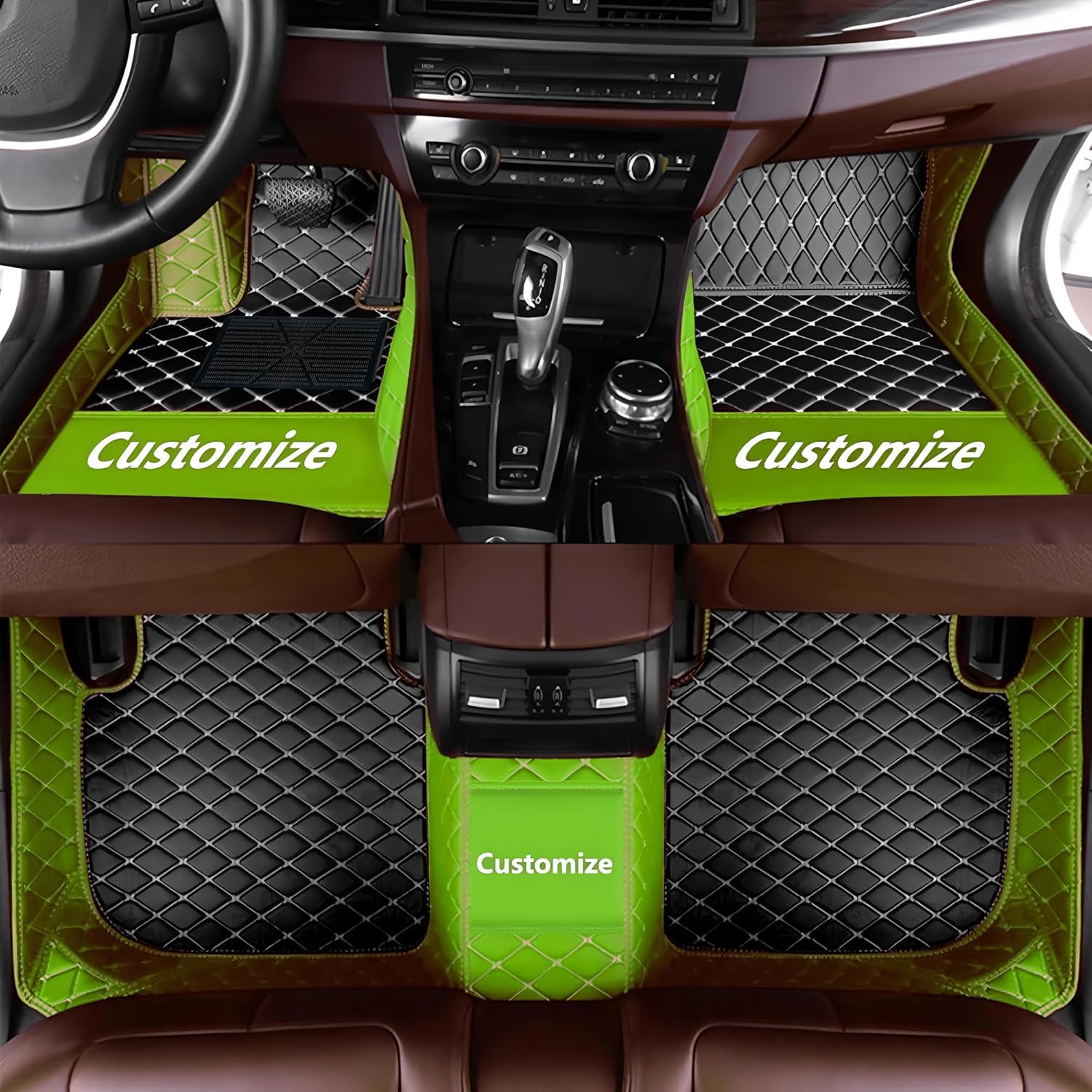 Custom Personalized Floor Mats for Cars,Luxury Full Coverage All Car Floor Mats,Anti-Slip Leather Car Mat Set ,Custom Floor Mats for 99% of Cars, Trucks & SUVs. (Apple Green and Black)