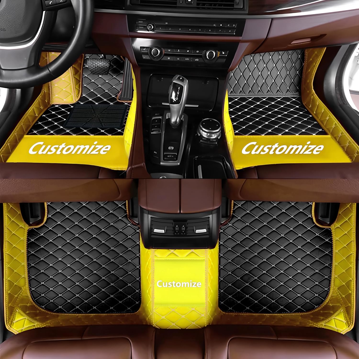 Custom Personalized Floor Mats for Cars,Luxury Full Coverage All Car Floor Mats,Anti-Slip Leather Car Mat Set ,Custom Floor Mats for 99% of Cars, Trucks & SUVs. (Yellow and Black)