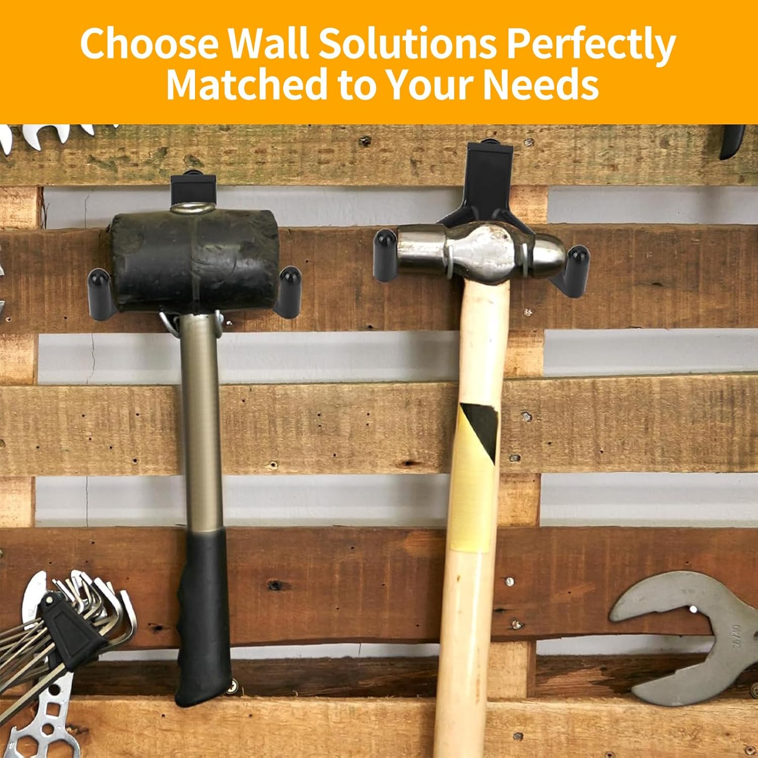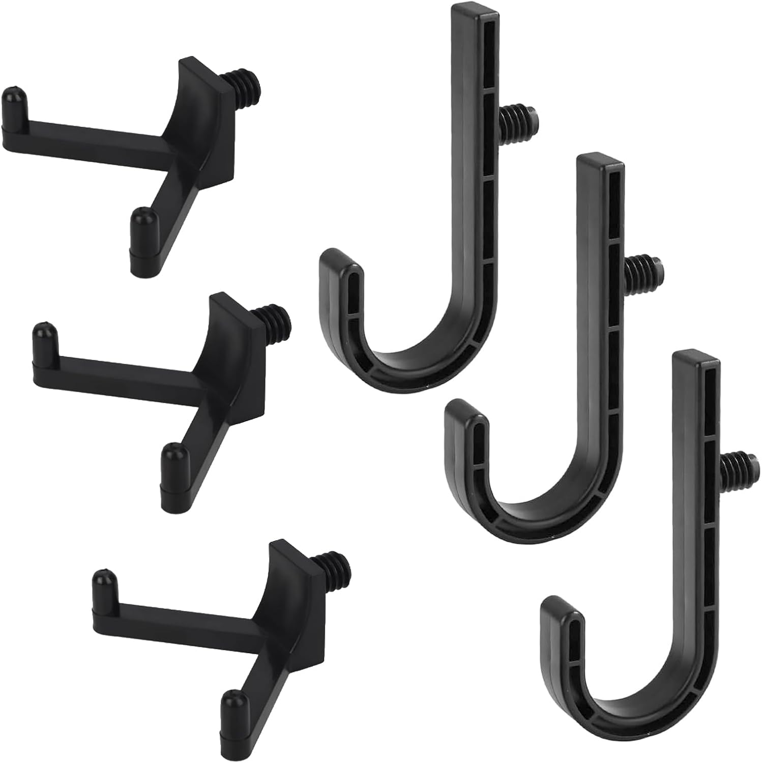 - 【Dual-Design for Maximum Utility】Single-head J hooks securely hold single-handle tools, while double-head V hooks accommodate bulky items like hoses and long-handled equipment. Maximize vertical space in your garage, shed, or workshop.